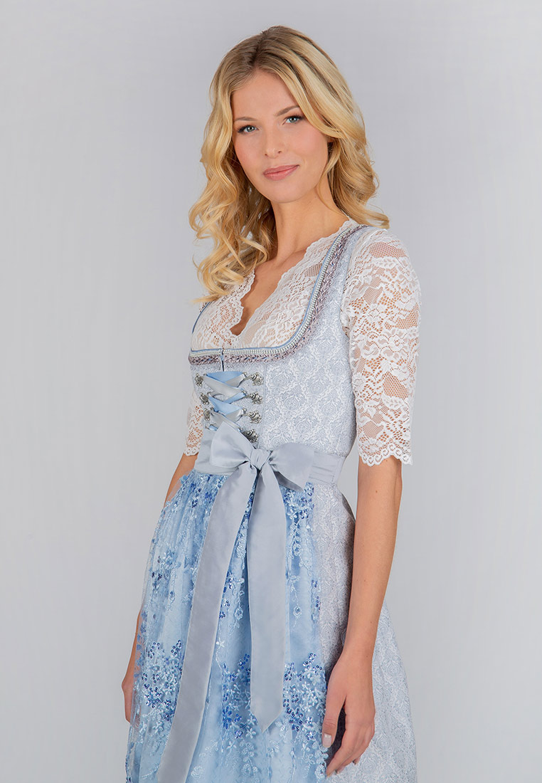Dirndlbluse Alaya von Stockerpoint in creme. Diese hochwertige Damenbluse verzaubert mit zahlreichen liebevollen Details und gehört zu unseren absoluten Lieblingsstücken. Der hochwertige Spitzenstoff prägt dieses wunderschöne Modell. Der V-Ausschnitt ist mit einer Bogenkante veredelt und umschmeichelt gekonnt das Dekolleté. Die kurzen Ärmel sorgen für einen zusätzlichen Akzent und runden das Design perfekt ab.