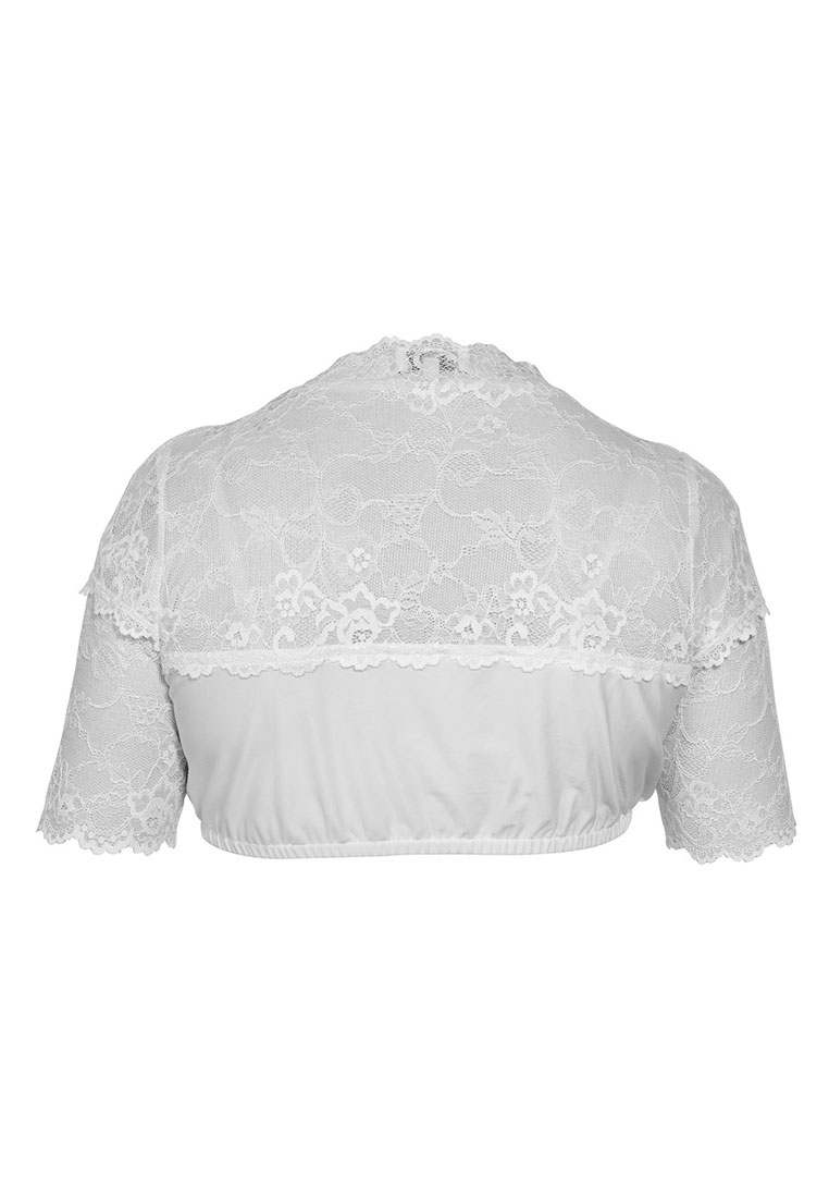 Schöne Spitzenbluse mit halblangem Arm und verstellbarem Dekolleté in der Farbe off white.