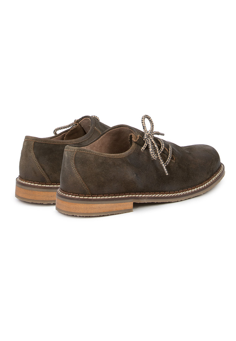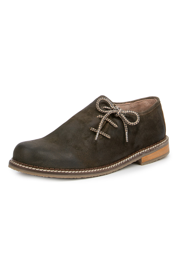 Haferlschuh Baker von Stockerpoint Classics. Der traditionelle Trachtenschuh ist aus hochwertigem Wildbock-Leder in Hirschoptik gefertigt und passt sich dank der seitlichen Schnürung optimal an Deinen Fuss an und bietet einen hohen Tragekomfort. Das Innenfutter ist aus weichem Kalbsleder gefertigt und garantiert, dass der Schuh auch nach längerem Tragen noch komfortabel ist. Robust und wetterbeständig ist die spezielle Gummisohle und sorgt für einen sportiven Auftritt. Übrigens fertigen wird die beliebten Haferlschuhe aus dem gleichen Leder wie unsere Lederhosen und lassen sich perfekt dazu kombinieren.