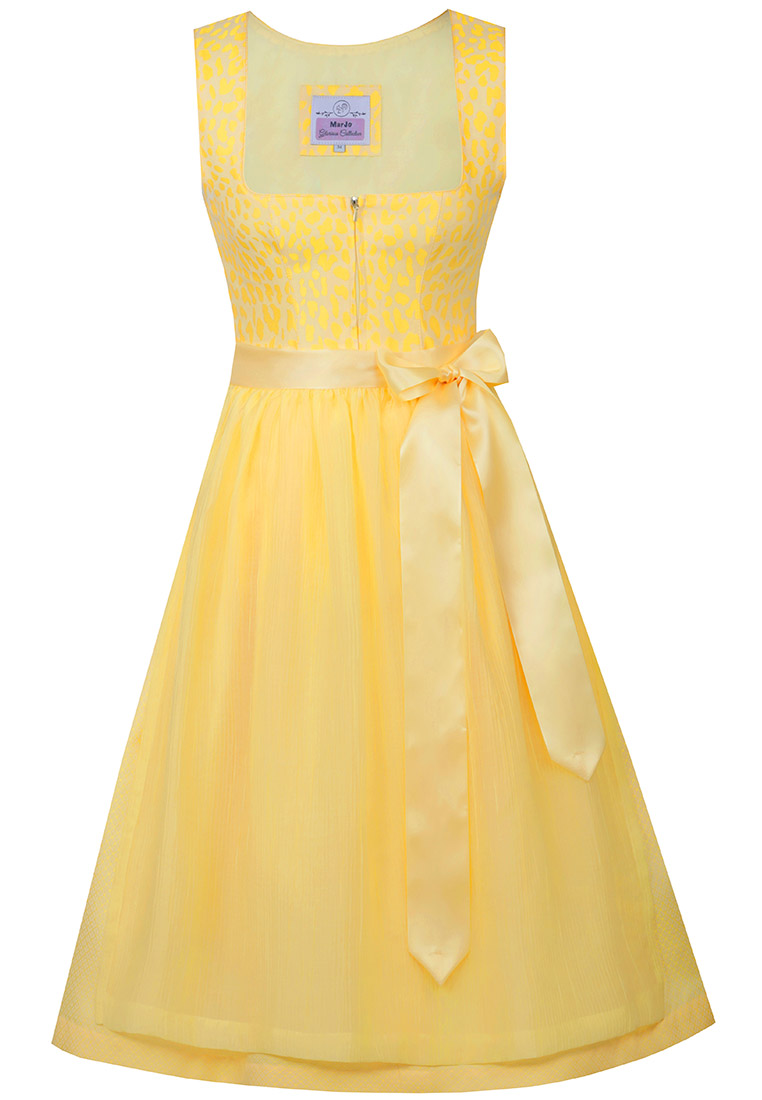 Entdecke das zauberhafte Dirndl von MarJo Trachten, das mit seinem strahlenden Gelb sofort ins Auge fällt und dir einen unvergesslichen Auftritt auf dem Oktoberfest garantiert. Das gesamte Kleid, inklusive des Oberteils und Rockteils, ist in leuchtendem Gelb gehalten, während das Oberteil mit einem Leo-Print im Ton-in-Ton-Design verziert ist. Diese raffinierte Kombination verleiht dem Dirndl eine besondere Eleganz und macht es zu einem echten Highlight. Die Rocklänge von 65 cm sorgt für eine perfekte Balance zwischen traditionellem Charme und modernem Stil. Dazu passt die passende und sehr luftig leichte Schürze, die dem Outfit einen zusätzlichen Hauch von Klasse verleiht. Wenn du deinen Look komplettieren möchtest, findest du in unserem Shop eine passende Bluse im selben Gelbton, die dein Oktoberfest-Outfit ideal abrundet. Für alle, die gerne auf dem Oktoberfest in einem stilvollen und auffälligen Kleid tanzen möchten, ist dieses Dirndl die perfekte Wahl. Bitte beachte, dass die Bluse nicht im Preis enthalten ist, aber in unserem Sortiment erhältlich ist. Greif schnell zu und sichere dir dieses einzigartige Dirndl, solange der Vorrat reicht!