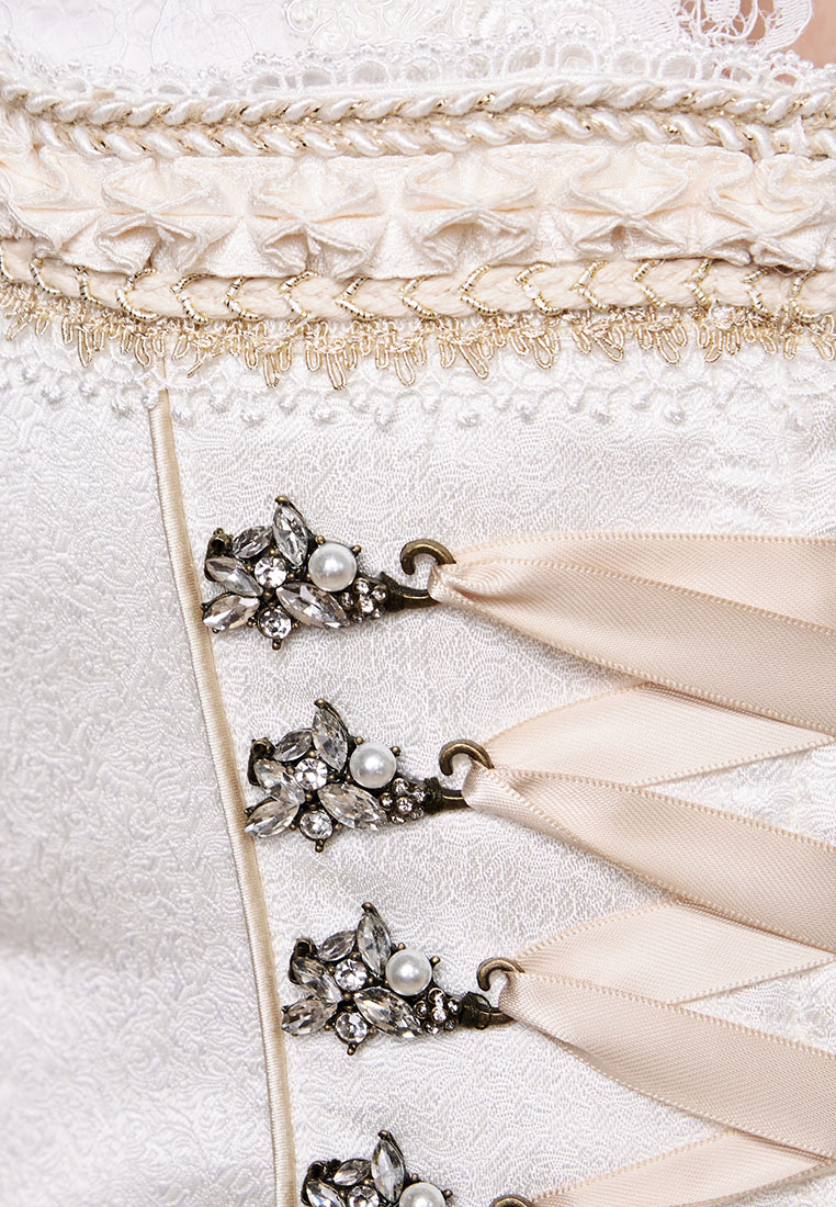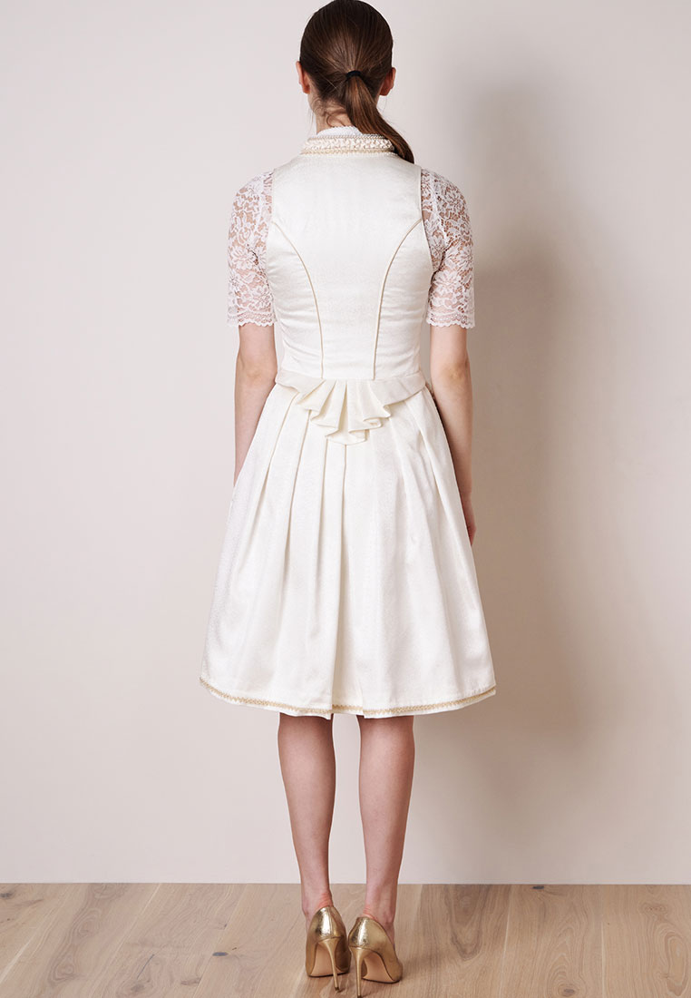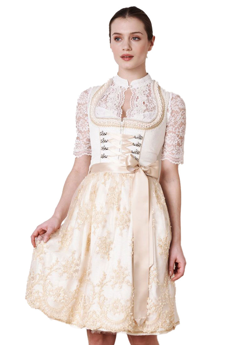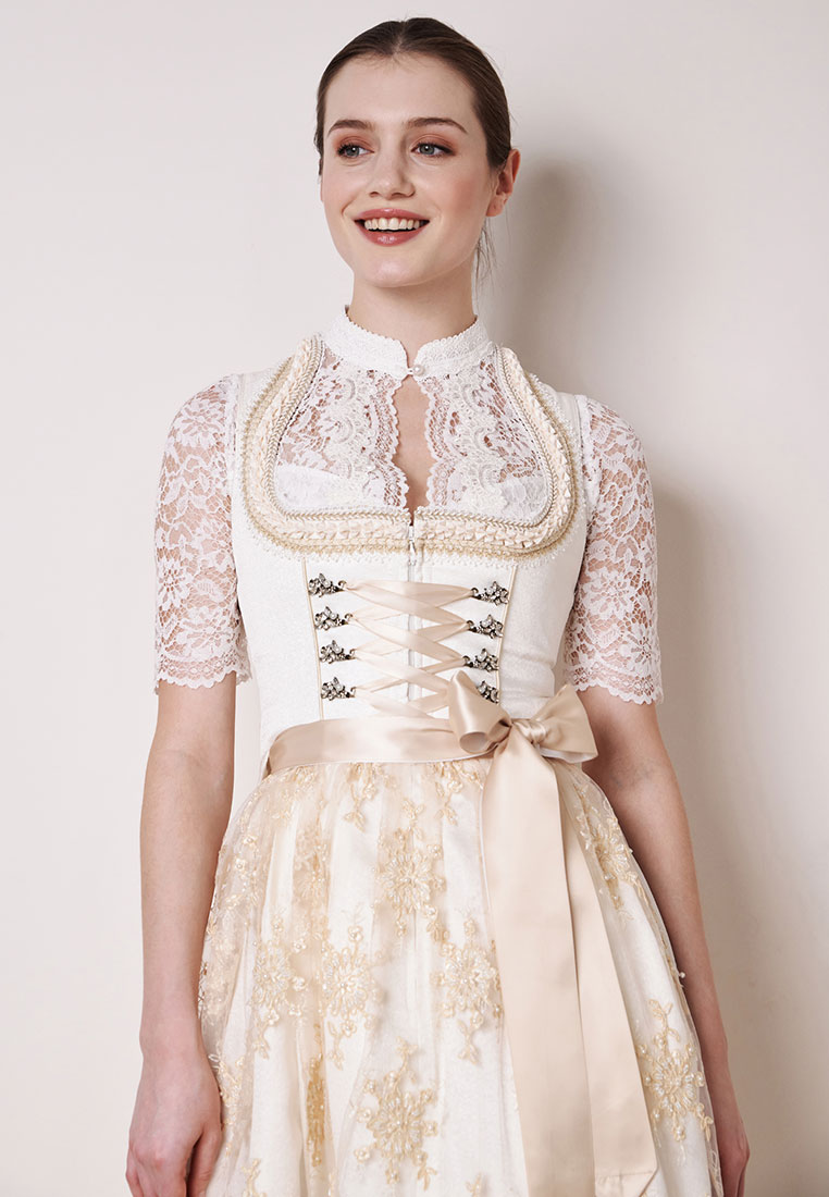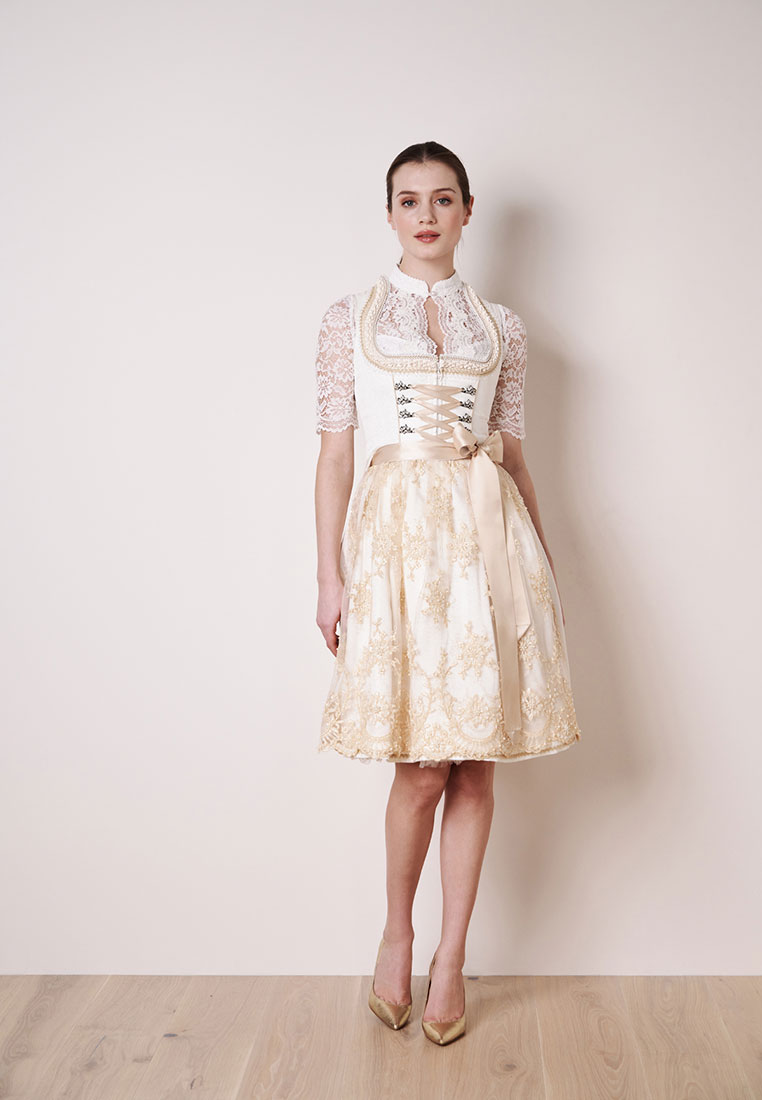 Verzaubere deinen Zukünftigen und deine Hochzeitsgäste mit diesem Dirndl. Das elegante, weisse Hochzeitsdirndl Ella mit schön bestickter Schürze lässt dich an diesem besonderen Tag noch ein bisschen mehr wie eine Madl-Prinzessin fühlen.
