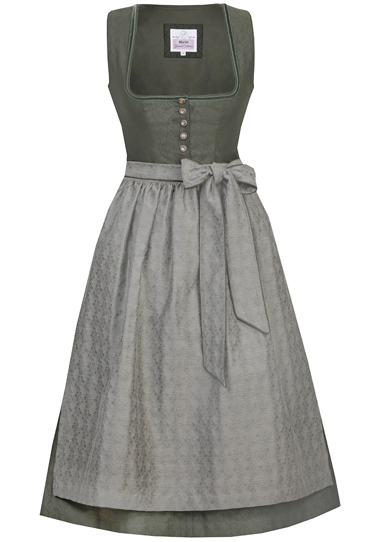 Das Dirndl Lina in Farn ist ein echtes Schmuckstück in einem wunderschönen Olivgrün, das zu jeder Gelegenheit passt. Mit seiner klassischen Rocklänge von 68 cm und dem schlichten Design der Marke MarJo Trachten strahlt es zeitlose Eleganz aus. Die hochwertige Jacquard-Taft-Schürze verleiht dem Dirndl einen edlen Touch, während die kleinen Knöpfe an der Vorderseite liebevolle Akzente setzen. Du kannst dieses Dirndl vielseitig kombinieren – es sieht sowohl mit einer Bluse in Grün, Creme oder Weiss als auch mit einer schwarzen Dirndlbluse einfach umwerfend aus. Eine Trachtenjacke in Grün rundet deinen Look perfekt ab und schafft ein harmonisches Ton-in-Ton-Outfit. Ob auf dem Oktoberfest, einer Hochzeit, einer traditionellen Feier oder einem gemütlichen Volksfest – das Dirndl Lina ist der ideale Begleiter und sorgt dafür, dass du überall eine gute Figur machst. In unserem Shop findest du zudem eine Auswahl an passenden Accessoires, die deinen Look komplettieren. Wähle aus wunderschönen Ketten, Ohrringen oder Haarbändern und setze zusätzliche Highlights, die dein Outfit noch einzigartiger machen. Bitte beachte, dass im Preis keine Bluse inklusive ist, aber keine Sorge – wir haben eine Vielzahl unterschiedlicher Blusen in unserem Sortiment. So kannst du das Dirndl ganz nach deinem Geschmack kombinieren. Mit dem Dirndl Lina bist du stets stilvoll und traditionell gekleidet, egal zu welchem Anlass.