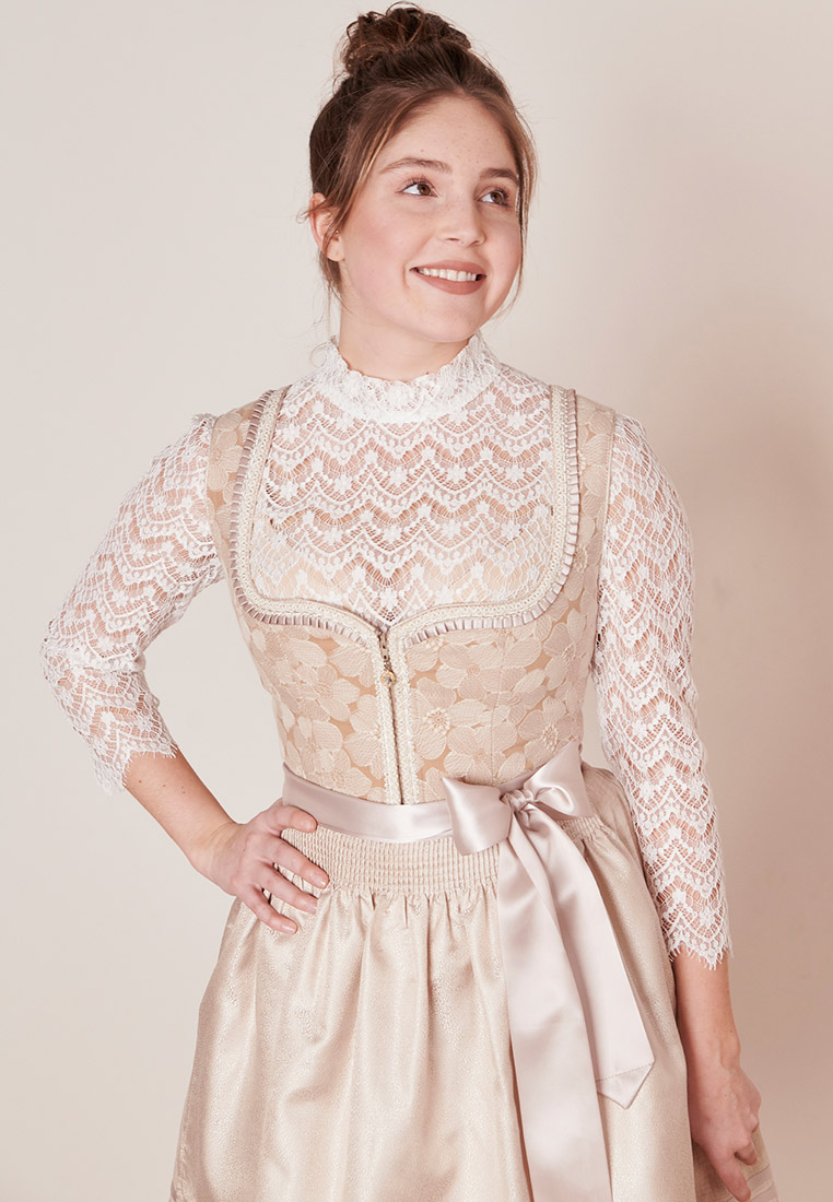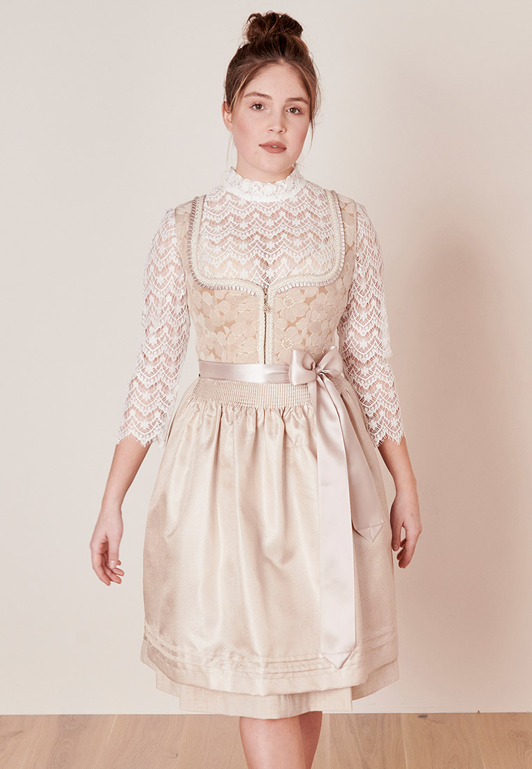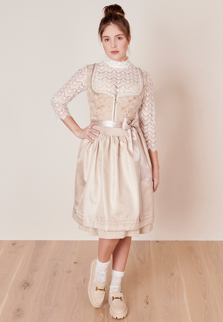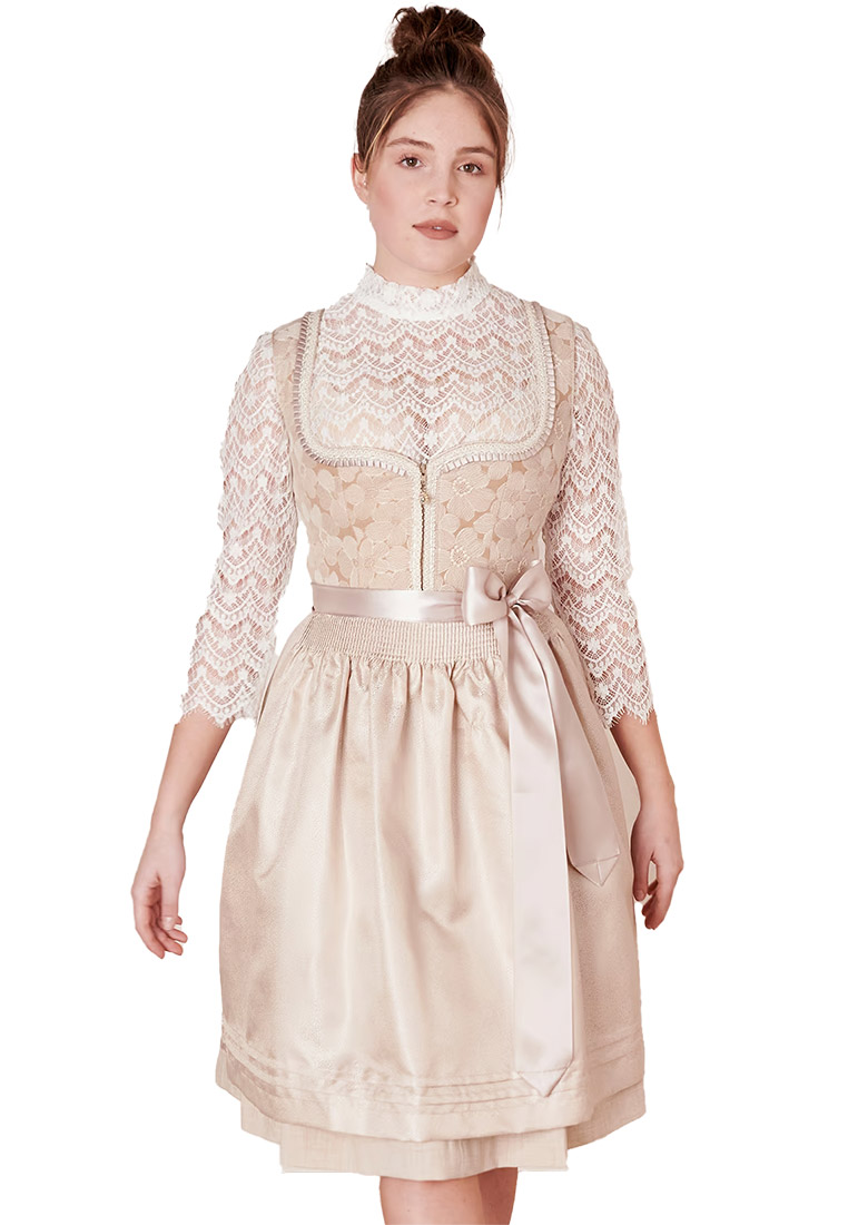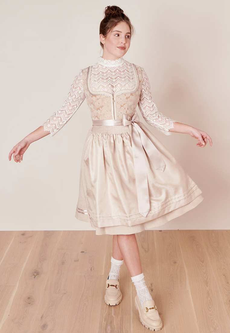 Schau dir mal dieses Krüger Dirndl an! Es strahlt einfach zeitlose Eleganz aus. Der Beigeton des Rocks und die aufwendige Stickerei auf dem Oberteil sind einfach umwerfend. Der Rock ist schlicht, aber das Oberteil ist ein echter Hingucker mit seinem Blumenmuster. Die Schürze aus glänzendem Taft rundet den Look perfekt ab. Und weisst du was? Der Setpreis beinhaltet sowohl das Dirndl als auch die Schürze. Für die Dirndlbluse empfehlen wir entweder Weiss oder Ecru. Du findest viele tolle Blusen in unserem Sortiment. Das Krüger Dirndl hat eine Rocklänge von 60cm und ist aus der Krüger Dirndl Collection der hochwertigen Krüger Dirndl Linie. Der harmonische Mix der Materialien und trotzdem schlicht Ton in Ton gehalten, kann man da wohl nicht widerstehen. Es ist einfach ein Traum! Kaufe dir dieses Krüger Dirndl direkt in unserem Schweizer Store und wir garantieren dir schnelle schweizweite Lieferung.