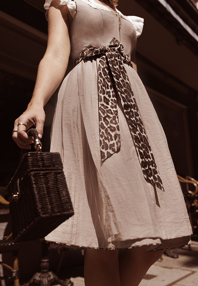 Mit dem Dirndl Solea Leo bringt Marjo Trachten gemeinsam mit Influencerin Maxime Möckl einen modernen Twist in die Welt der Trachten. Maxime ist bekannt für ihren modischen Stil und ihre Liebe zu besonderen Details – genau das spiegelt sich in diesem aussergewöhnlichen Design wider. Das Dirndl besteht aus einem weich fallenden Stoff in edler Baumwoll-/Leinen-Optik und überzeugt mit einem schlichten, natürlichen Look, der durch feine Leo-Details raffiniert aufgepeppt wird. Die Schürze ist aus leichtem, fliessendem Stoff gefertigt und wird mit einem langen Bindeband in Leo-Optik zur Schleife gebunden – ein stilvoller Blickfang mit urbanem Flair, der durch den Leo-Look Abschluss vom Mieder abgerundet wird. Dieses angesagte Dirndl ist ein Must-have für stilbewusste Trachtenfans – exklusiv für euch in die Schweiz geholt!