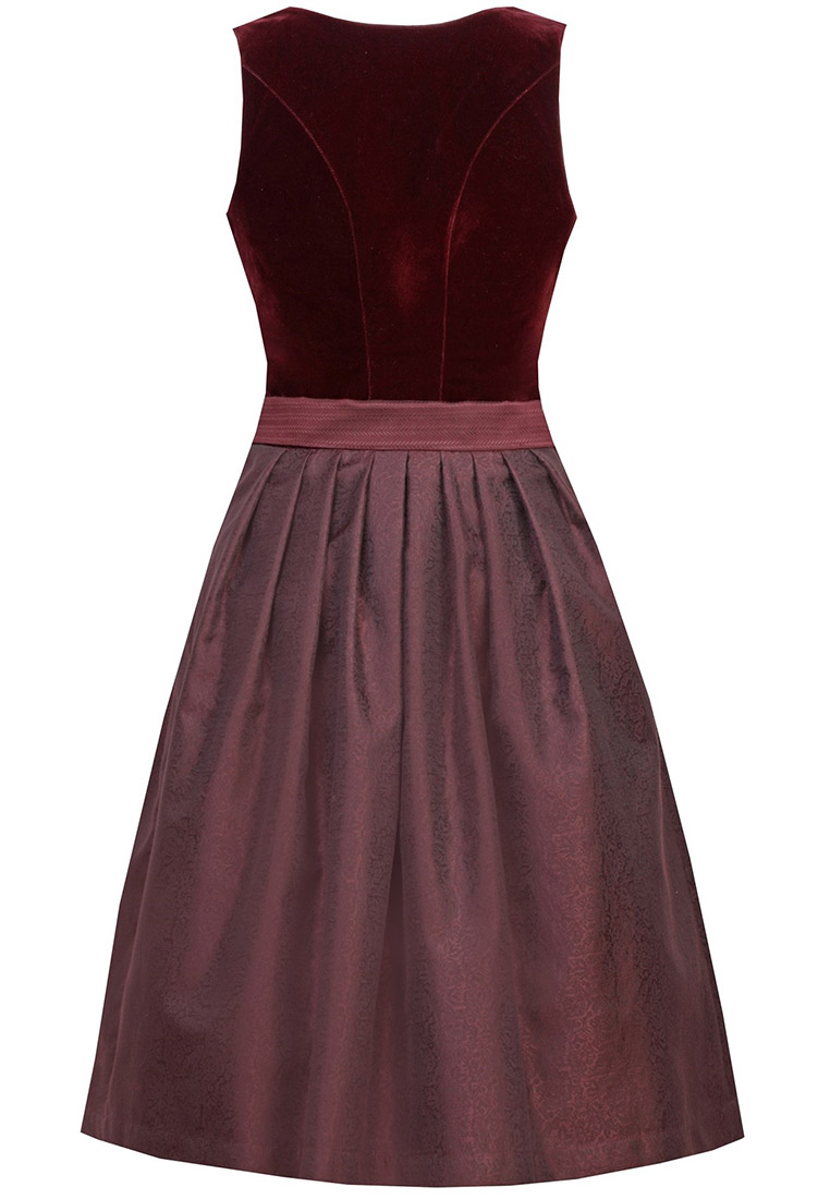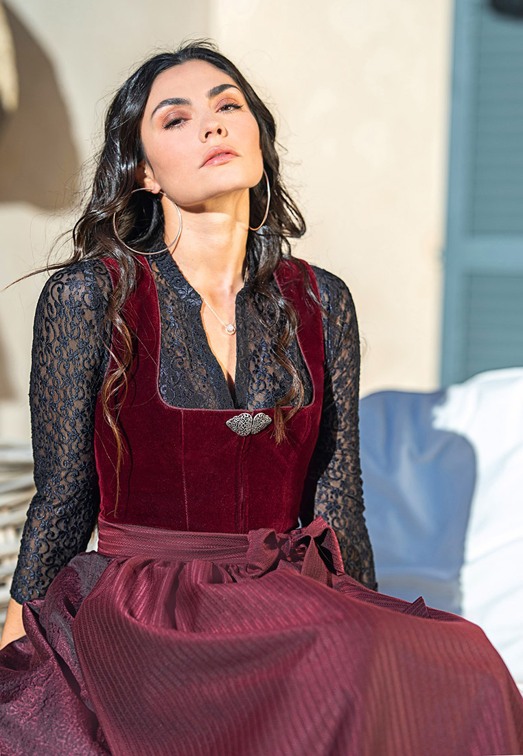 Mit dem Dirndl Susi in Rotwein von Marjo Trachten setzt Du ein modisches Statement voller Eleganz und Tradition. Die Rocklänge von 65 cm und das Oberteil aus edlem Samt verleihen diesem Dirndl eine zeitlose Ausstrahlung. Der praktische Reissverschluss und die mittige Brosche als Verschluss sorgen für dezente Akzente und erleichtern das An- und Ausziehen. Der farblich abgestimmte Unterrock und die weinrote Schürze fügen sich perfekt in den Ton-in-Ton-Look ein – genau im Trend. Dieses schlichte und stilvolle Dirndl lässt sich vielseitig kombinieren. Ob mit der Dirndlbluse Ineska Klara in Bordeaux für einen harmonischen Look oder mit einer weissen oder schwarzen Bluse für einen aufregenden Kontrast – Du wirst garantiert zum Hingucker. Mit dem Dirndl Susi in bordeaux entscheidest Du Dich für ein stilvolles Kleid, das durch seine schlichte Eleganz und den angesagten Bordeaux-Ton besticht. Bordeauxfarbene Dirndl sind und bleiben ein Klassiker, der nie aus der Mode kommt. Kaufe diese Kleid bei Wiesnshop in der Schweiz und erspare dir komplizierte Zollabwicklungen bei Trachtenanbietern aus Deutschland.