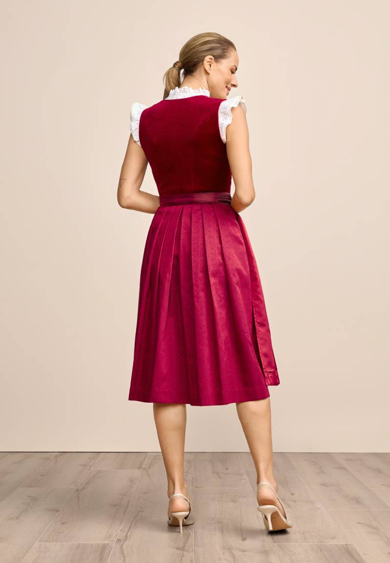 Das Dirndl Anahita ist die ideale Wahl für alle, die klassischen Stil lieben. Mit seiner taillierten Passform betont es deine Figur und sorgt für einen eleganten Auftritt. Der Rock, der mit einer Länge von 70cm knapp unter dem Knie endet, ist mit zwei praktischen Eingrifftaschen ausgestattet - perfekt für kleine Utensilien. Ein besonderes Highlight ist der Reissverschluss auf der Vorderseite des Mieders, der dem Dirndl eine moderne Note verleiht. Das ärmellose Design unterstreicht den zeitgemässen Charme, während die schlichte Schürze das Gesamtbild harmonisch abrundet. Ohne Miederschnürung gehalten, steht das Dirndl für minimalistischen, modernen Stil. Mit Dirndl Anahita zeigst du dich stilsicher und elegant! Das Model ist 1,72m gross und trägt auf diesem Foto das Dirndl in der Rocklänge 70cm. In unserem Sortiment findest du viele tolle Dirndlblusen. Wir empfehlen dir eine weisse Bluse, damit das knallige Rot besonders gut zur Geltung kommt.