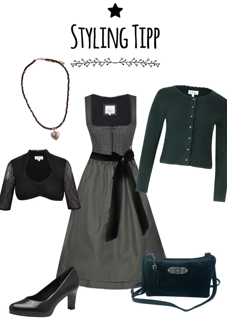 Das Dirndl „Elsendorf“ von Marjo ist ein stilvoller Klassiker mit moderner Eleganz – perfekt für alle, die ein selbstbewusstes Statement setzen möchten. In der Farbkombination Waldgrün und Schwarz zeigt sich dieses Modell kraftvoll, edel und traditionsbewusst zugleich. Die feine Musterung des Mieders bringt Tiefe ins Design, während der schwarze Samtgürtel mit Schleife dem Gesamtbild eine exklusive Note verleiht. Der Rocklänge misst 65 cm – ideal für eine feminine, dennoch alltagstaugliche Silhouette. Sowohl Rock als auch Schürze sind aus strapazierfähigem Polyester gefertigt, was das Dirndl pflegeleicht und langlebig macht. Die seidige Optik des Materials sorgt für einen fliessenden, edlen Fall und rundet das Dirndl auch optisch gelungen ab. Das Dirndl „Elsendorf“ ist die perfekte Wahl für moderne Trachtenliebhaberinnen, die Tradition neu interpretieren wollen – ob auf dem Oktoberfest, zur Familienfeier oder bei festlichen Anlässen im Alltag.
