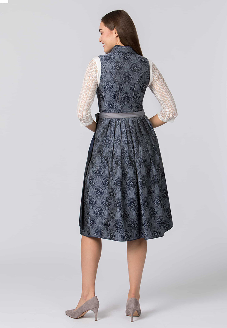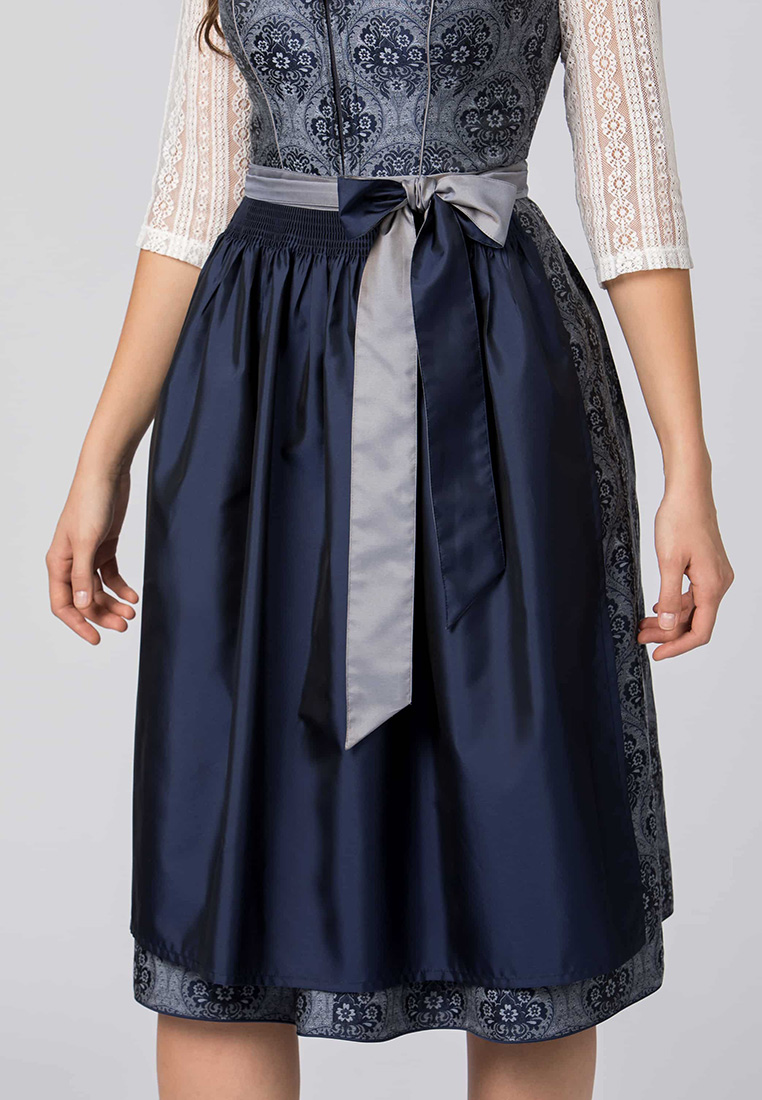 Das Dirndl Layla aus der Bergfeuer Couture Kollektion ist ein wahres Kunstwerk, das edle Tradition mit modernem Luxus vereint. In einem trendigen Design gehalten, spiegelt es das perfekte Zusammenspiel von klassischem Charme und zeitgemäßer Raffinesse wider – ideal für Frauen, die sowohl Stil als auch höchste Qualität zu schätzen wissen. Der besondere Charme des Dirndls liegt im raffinierten Schalkragen, der mit einer feinen Borte veredelt ist. Dieser Kragen verleiht dem Dirndl eine markante Ausstrahlung, die sofort ins Auge fällt. Der edel strukturierte Stoff, geschmückt mit einem modischen Druckmotiv, unterstreicht die hohe Qualität und den einzigartigen Charakter des Dirndls. Der weit schwingende Rock, ausgestattet mit einer praktischen Innentasche, kombiniert höchsten Tragekomfort mit einer luftig-leichten Eleganz. Ein echter Hingucker ist die zweifarbige Schürze, deren Band das Dirndl harmonisch abrundet. Der verdeckte Reissverschluss sorgt für eine perfekte Passform und setzt einen traditionellen Akzent. Formstäbchen im Mieder betonen zudem die feminine Silhouette. Das Dirndl Layla ist mehr als nur ein Dirndl – es ist ein Statement für stilbewusste Frauen, die ein einzigartiges Modell suchen, das sowohl die Werte der Tradition als auch den modernen Chic auf aussergewöhnliche Weise vereint.