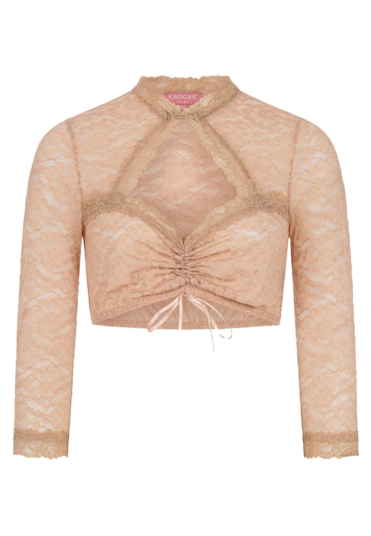 Schau mal, hier ist die Dirndlbluse "Amore Italiano" mit 3/4 Armen aus Spitze - ein absoluter Blickfang! Die Bluse wird mit einem kleinen Knopf um den Hals geschlossen, aber keine Sorge, dein Dekolleté wird trotzdem betont. Die Bluse hat nämlich definitiv einen Ausschnitt, der durch eine Schnürung variiert werden kann. Du kannst also selbst entscheiden, wie tief du blicken lässt! Dirndlblusen in Weiss, Creme und Schwarz sind zwar klassisch, aber Blusen in Farbe sind jetzt total im Trend. Gerade in der Trachtenwelt sind farbige Dirndlblusen absolut angesagt und passen perfekt zu deinem Dirndl.