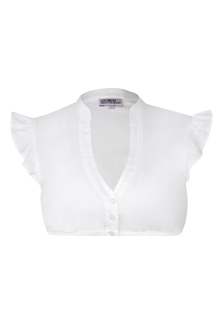 Entdecke die stilvolle Dirndlbluse mit Flügelärmeln in klassischem Weiss von Marjo Trachten – der perfekte Begleiter für Dein Dirndl! Diese Bluse vereint schlichte Eleganz mit einem Hauch von Extravaganz und ist genau das Richtige für einen modernen, aber dennoch traditionellen Look. Der feminine V-Ausschnitt und der elegante Stehkragen setzen Dich perfekt in Szene, während die drei kleinen Knöpfe auf der Vorderseite für einen charmanten Akzent sorgen. Die zarten Flügelärmel verleihen der Bluse eine luftige Leichtigkeit, die wunderbar zu Deinem Dirndl passt. Hergestellt aus 100% Baumwolle, bietet Dir diese Bluse einen besonders angenehmen Tragekomfort – ideal für lange Tage auf Volksfesten und anderen festlichen Anlässen. Das hochwertige Material fühlt sich weich auf der Haut an und sorgt dafür, dass Du Dich rundum wohlfühlst. Mit dieser Dirndlbluse setzt Du auf den Trend des Jahres – zeitlos, elegant und doch einzigartig. Kombiniere sie mit Deinem Lieblingsdirndl und erlebe, wie stilvoll Tradition sein kann! Kaufe diese Bluse direkt in Wallisellen in der Schweiz oder bestelle sie bequem zu dir nach Hause mit gratis Versand.