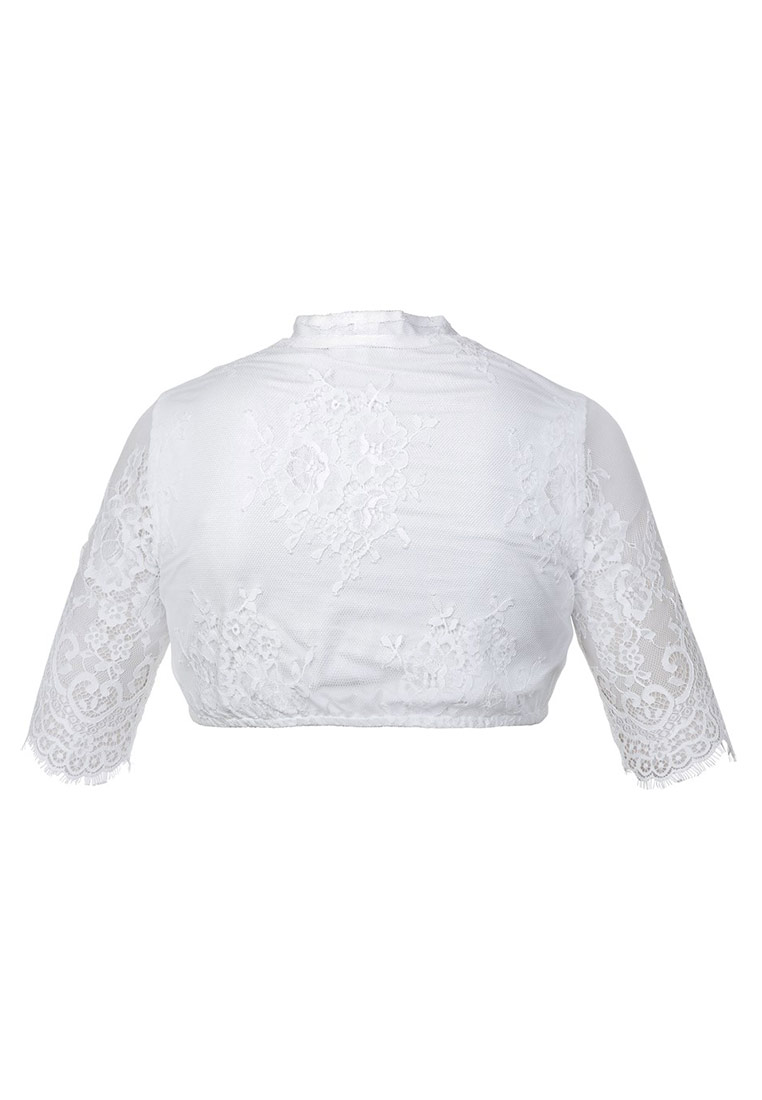 Schöne Spitzenbluse mit halblangem Arm und verstellbarem Dekolleté in der Farbe off white. Bequemes Material mit Stretchanteil.