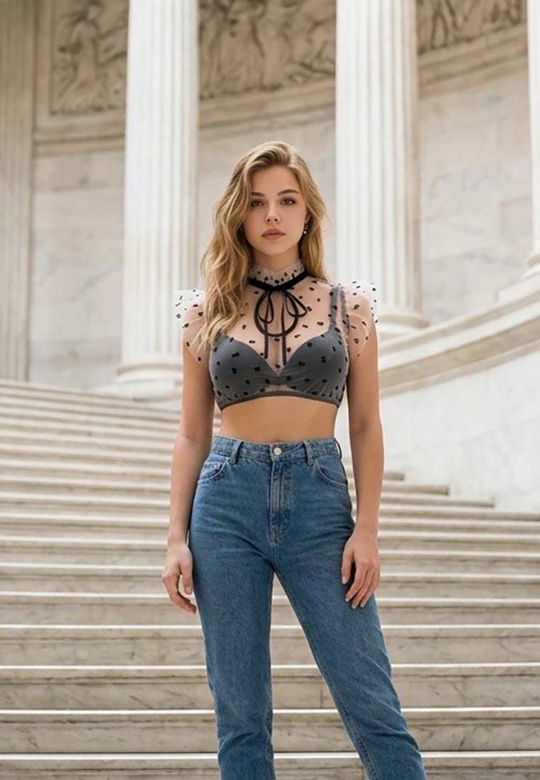 Dirndlbluse transparent schwarz mit Blumen und Flügelärmeln von my choice! - Diese Dirndlbluse ist ein echtes Highlight für moderne Trachtenlooks und setzt auf raffinierte Transparenz und verspielte Details. Der feine, transparente Stoff mit zarten schwarzen Blumen verleiht der Bluse eine feminine, leichte Ausstrahlung und sorgt für einen besonders eleganten Auftritt. Die luftigen Flügelärmel unterstreichen den romantischen Look und bringen gleichzeitig eine moderne Note ins Outfit. Der hochgeschlossene Schnitt mit feinem Kragen und Schleifenband wirkt stilvoll und aussergewöhnlich – perfekt für Frauen, die ihre Tracht individuell und modisch interpretieren möchten. Durch die transparente Optik lässt sich die Bluse vielseitig kombinieren und passt hervorragend zu schlichten Dirndl in dunklen oder neutralen Farbtönen. Ob zum Oktoberfest, zu Trachtenevents oder festlichen Anlässen – diese Dirndlbluse setzt bewusste Akzente und macht jedes Outfit zu etwas Besonderem.