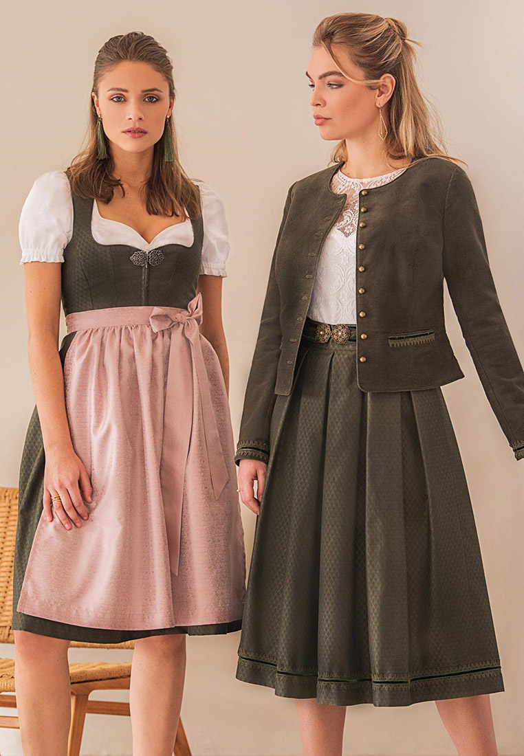 Die Trachtenjacke Teising in Farn von MarJo Trachten besticht durch ihren wunderschönen Olivton und ist ein stilvoller Begleiter für dein Trachten-Outfit. Ihr schlichtes und dezentes Design passt perfekt zu jedem Dirndl oder Trachtenrock und verleiht deinem Look eine elegante, natürliche Note. Besonders schön lässt sich diese Jacke mit einer passenden Dirndlbluse kombinieren, die du ebenfalls in unserem Shop findest. Mit ihren kleinen, runden Knöpfen wirkt die Jacke zurückhaltend und klassisch. Die zwei kleinen Taschen auf der Vorderseite sorgen für eine charmante Optik und bieten Platz für kleine Utensilien. Die Trachtenjacke Teising in Farn hält dich an kühlen Tagen angenehm warm und rundet dein Outfit stilvoll ab. Sie ist ein Must-have für alle, die ihren Trachten-Look auf elegante und zugleich traditionelle Weise vollenden möchten. Ob zum festlichen Anlass, auf der Wiesn oder einfach in der Freizeit – mit dieser Jacke bist du immer perfekt gekleidet. Trage diese tolle grüne Trachtenjacke zu einem schönen Dirndl in grün.