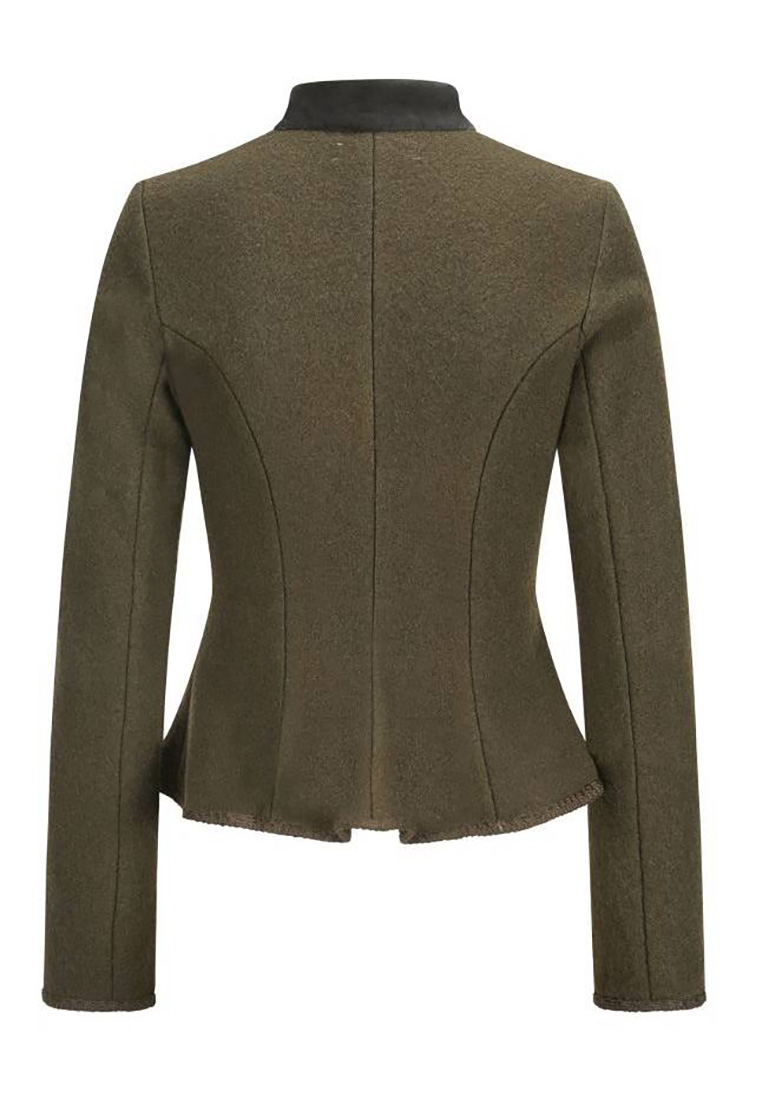 Der Walkjanker Amelie oliv von Alpenherz vereint traditionelle Eleganz mit modernem Chic. Gefertigt aus hochwertigem Walkstoff, bietet diese Jacke eine perfekte Kombination aus Wärme, Komfort und Stil. Ihr taillierter Schnitt sorgt für eine feminine Silhouette, während die feinen Zierborten und detailverliebte Knöpfe den klassischen Trachtencharakter unterstreichen. Dank des weichen, aber dennoch strapazierfähigen Materials ist der Walkjanker ideal für kühlere Tage und lässt sich vielseitig kombinieren – ob zu einem Dirndl, einer Lederhose oder einer schlichten Jeans. Die hochwertigen Materialien garantieren Langlebigkeit und Tragekomfort, während die zeitlose Farbgebung dem Janker eine stilvolle Vielseitigkeit verleiht. Der Walkjanker Amelie ist die perfekte Wahl für Frauen, die einen hochwertigen, stilvollen und zugleich funktionalen Trachtenjanker suchen – passend für festliche Anlässe, das Oktoberfest oder den Alltag in den Bergen.