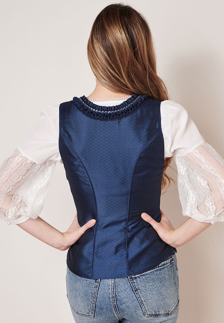 Schönes Mieder in Königsblau. Das Mieder der Marke Krüger ist eine tolle Option für eine Kombination zu einer Hose oder einem Trachtenrock. Es muss nicht immer ein Dirndl sein. Es gibt auch sonst ganz tolle Kombinationen, wie man ans Oktoberfest, zur Schlagerparty oder zur Trachtenhochzeit erscheinen kann. Eine Bluse ist nicht im Preis inklusive. Schau unbedingt noch bei unseren Dirndlblusen rein. Auch ein Spitzenbody kann eine schöne Kombination ergeben.