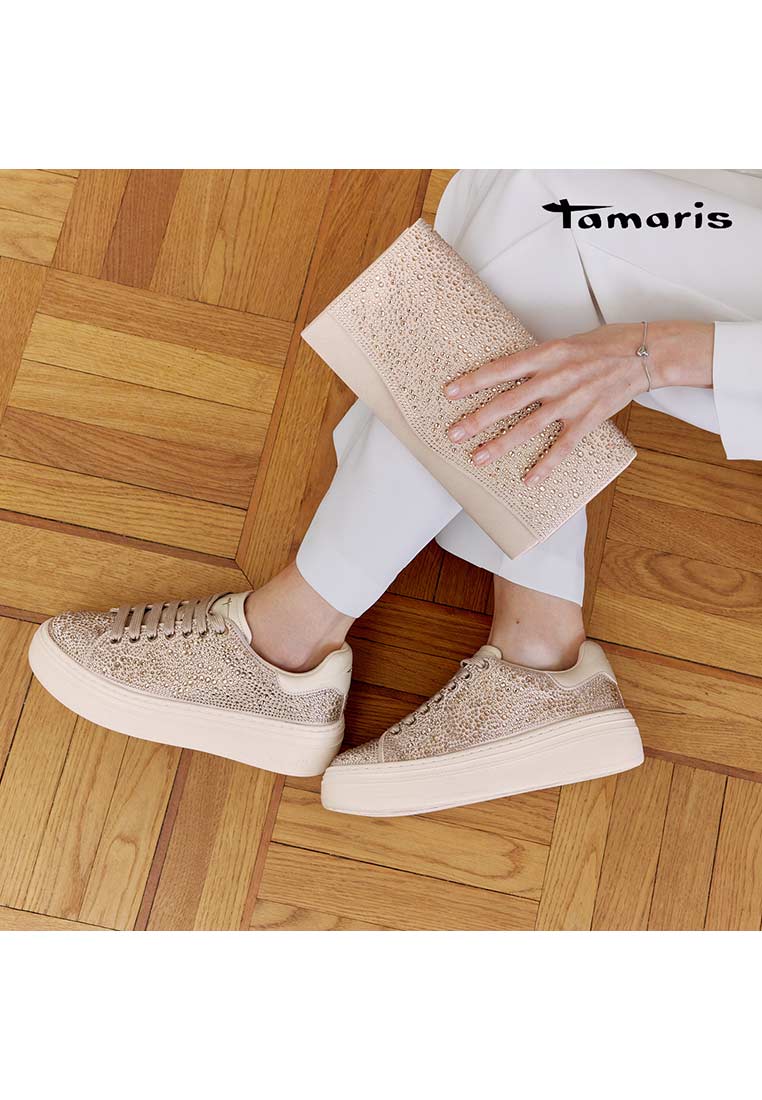 Glamouröser Auftritt garantiert! Mit dem Tamaris Oktoberfest Sneaker in Beige mit Strassbesatz ziehst du alle Blicke auf dich – ob zum Dirndl, Lederrock oder lässigen Trachtenlook. Dieser modische Damensneaker vereint traditionelle Elemente mit modernem Streetstyle und ist die perfekte Wahl für Frauen, die Stil und Komfort am Oktoberfest kombinieren möchten. Der bequeme Plateausneaker überzeugt mit einem schimmernden Strassbesatz, der für den funkelnden Wow-Effekt sorgt. Dank der weichen Innensohle und der robusten Laufsohle trägt sich der Sneaker auch bei langen Festtagen äusserst angenehm. Die neutrale Farbgebung in Beige macht ihn vielseitig kombinierbar – egal ob zum pastelligen Dirndl oder zur Jeans.Ideal für Wiesn, Volksfest, Sommerparty oder einfach als modisches Highlight im Alltag. Mit diesem Tamaris Sneaker bist du ready für deinen stilvollen Auftritt mit Tracht!