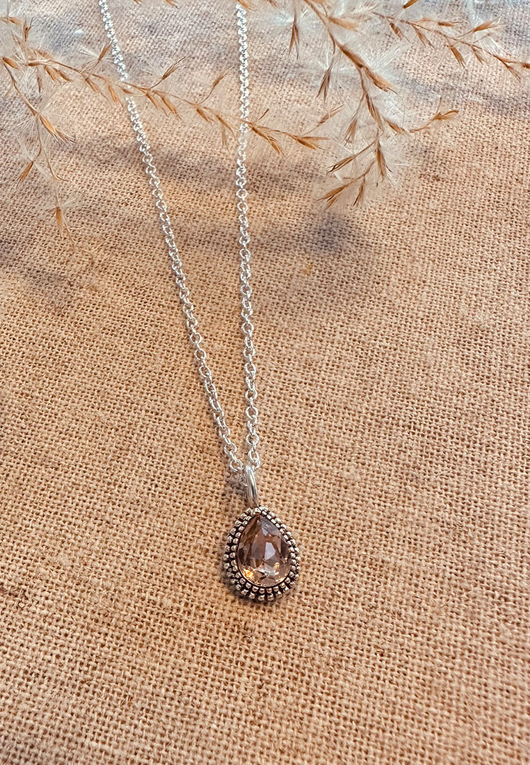 Schöne Halskette aus versilbertem Metall der Marke Une Ligne mit süssem kleinen Anhänger in Rosa. Der Stein ist ein Swarovski Stein.
