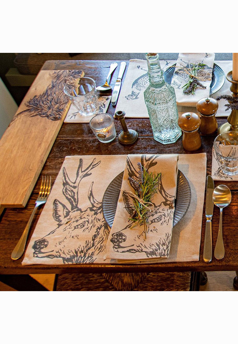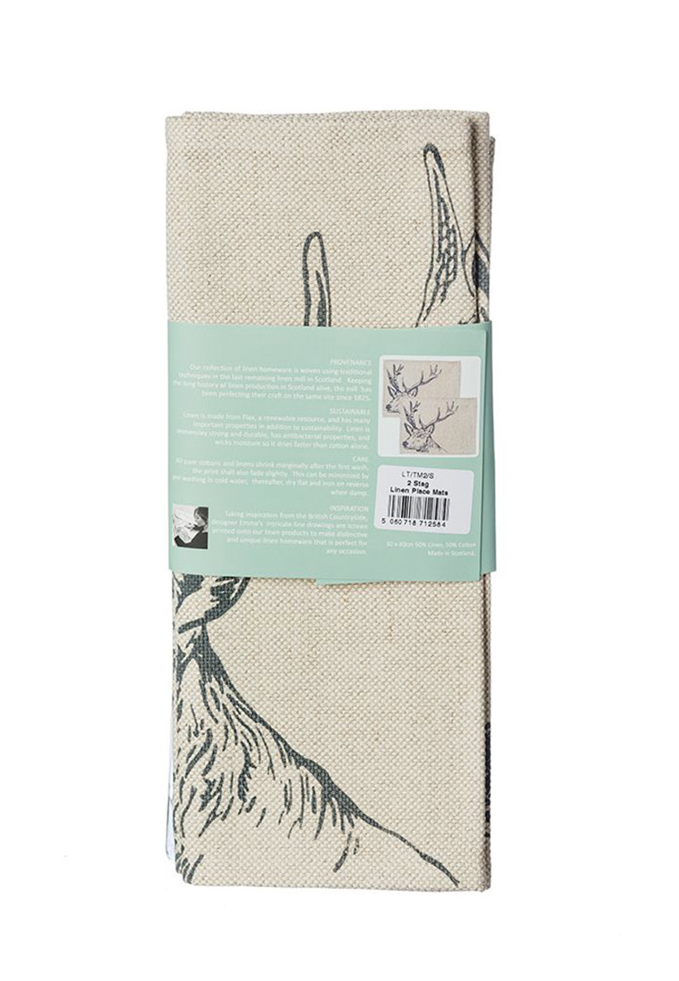 2 einzigartige Tischsets aus Leinen-Baumwoll-Mischung, die jeweils mit einem einzigartigen Hirschdesign im Siebdruck bedruckt sind. Diese unverwechselbaren Tischsets sind eine großartige Kulisse für Zusammenkünfte zum Abendessen. Das natürliche Finish dieser Tischsets bietet einen minimalistischen Look, der Ihrem Tisch eine einfache Raffinesse verleiht. Die perfekten Go-to-Pieces für Dinnerpartys oder den täglichen Gebrauch. Gewebt in Schottland mit traditionellen Techniken in der letzten verbliebenen Leinenmühle in Schottland.