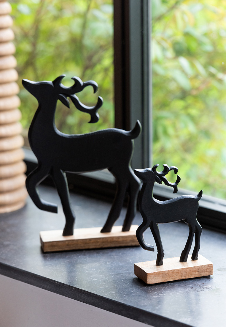 Mit Rentier klein Rudi von J-Line zieht festliche Stimmung in dein Zuhause ein! Die stilisierte Silhouette des Rentiers aus schwarzem Aluminium steht auf einem stabilen Sockel aus naturbelassenem Holz – perfekt für eine winterliche Dekoration im skandinavischen oder rustikalen Stil. Ob auf dem Sideboard, Fensterbrett oder als Teil eines festlichen Arrangements – Rentier Rudi bringt charmante Wald-Atmosphäre in jeden Raum und ist auch als Geschenk eine schöne Idee. Masse: 10.5x5x16.5cm.