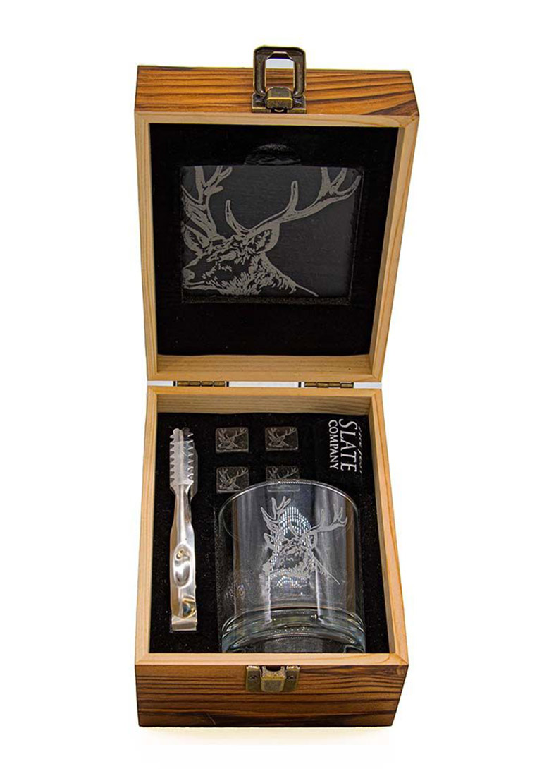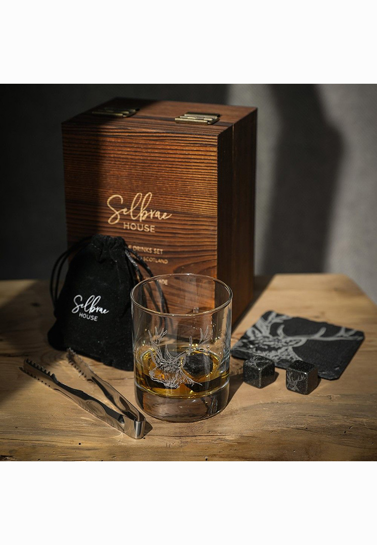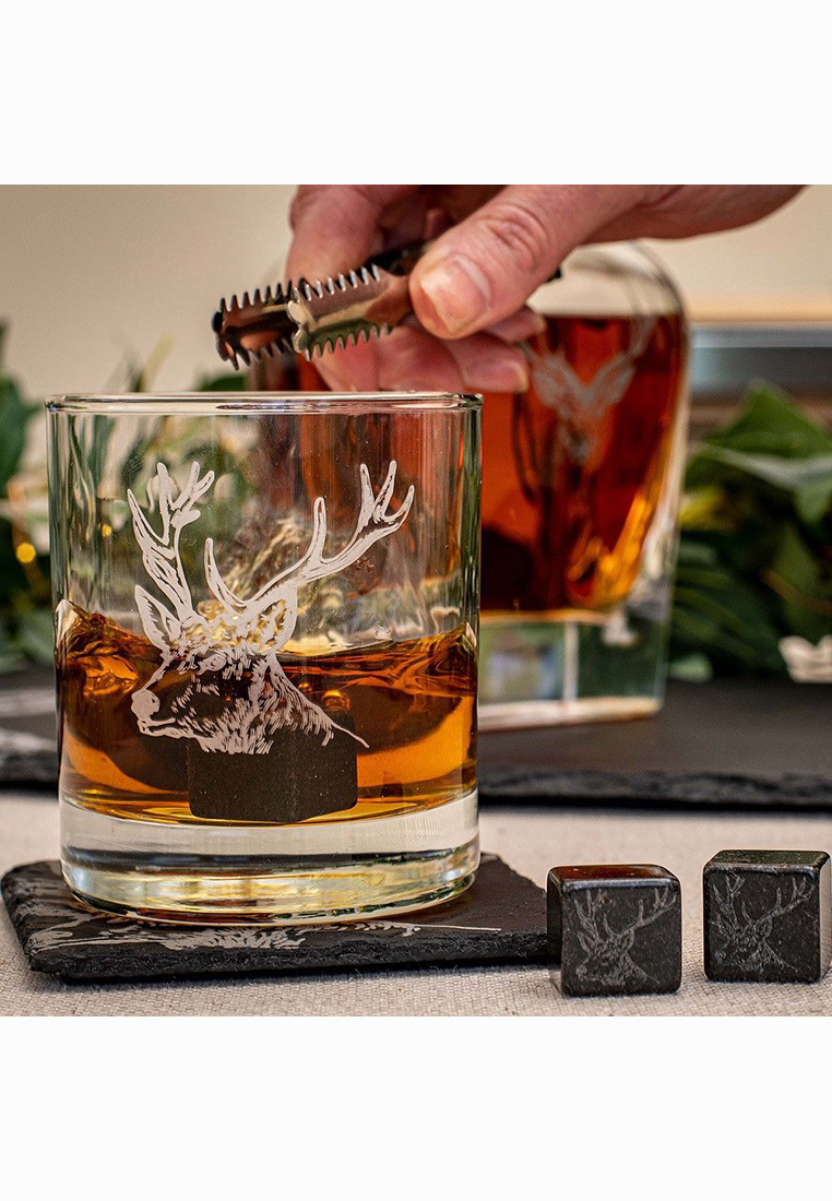 Ein Geschenk perfekt für die Männerwelt. Ein Tumbler Glas mit Untersetzer, Eiszange und Eiswürfeln, alles im Hirsch Design. Dazu kommt eine hölzerne hochwertige Geschenkverpackung. Vielleicht gibt’s dazu ja noch eine Flasche feinen Whisky und der oder natürlich auch die Beschenkte ist happy. Perfektes Weihnachtsgeschenk finden wir.