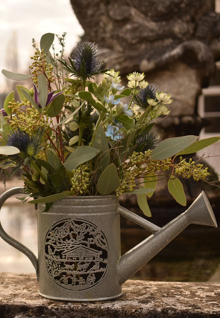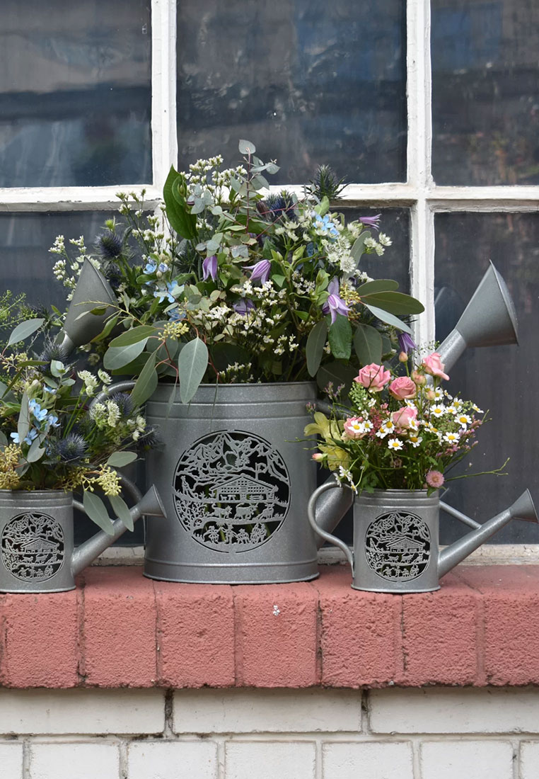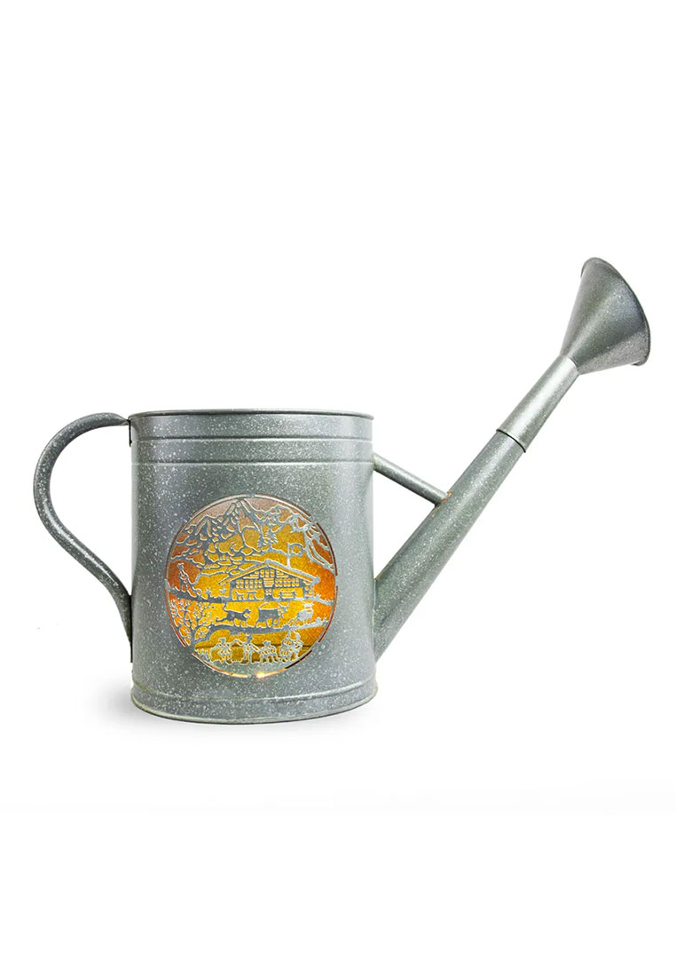 Die antiken Giesskannen gehen bis auf anfangs des 18. Jahrhunderts zurück und freuen sich seit je her grosser Beliebtheit in Schweizer Gärten. Zu Ehren dieser Relikte hat Lumière des Alpes die Kollektion «Giardina Alpina» entwickelt. Die liebevoll kreierten Produkte lassen sich einerseits perfekt mit einem Blumen-Bouquet inszenieren oder in den Abendstunden mit Kerzen angenehm ausleuchten. «Giardina Alpina» ist mit einem Scherenschnitt von Esther Gerber entstanden. Grösse 18x58 x 42cm