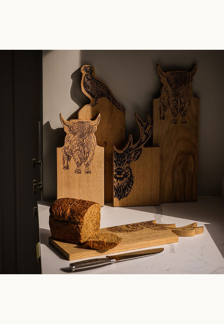 Bereichern Sie Ihre Servier- und Gastgebererlebnisse mit unserem fachmännisch gefertigten, gerahmten Servierbrett aus Eiche mit Hirschmotiv von der Marke Selbrae House. Die Oberseite des Brettes ist kunstvoll in Form eines Hirschkopfes gestaltet und mit einer eindrucksvollen Gravur eines Hirschmotivs verziert, was Ihren kulinarischen Präsentationen eine künstlerische Note verleiht. Perfekt für Ihre nächsten gesellschaftlichen Zusammenkünfte: Dieses Servierbrett eignet sich ideal, um eine Auswahl an Fleisch, Käse und mehr zu präsentieren, und dient zugleich als faszinierender Gesprächsstarter, der für seine einzigartige und charmante Gestaltung bewundert wird. Hinterlassen Sie einen bleibenden Eindruck bei Ihren Gästen mit unserem aussergewöhnlichen, gerahmten Eichen-Servierbrett mit Hirschmotiv. Über den Hersteller: Selbrae House ist ein etabliertes, unabhängiges Familienunternehmen, das eine breite Palette hochwertiger Produkte anbietet, deren Design und Herstellung fest in Schottland verwurzelt sind. Gegründet im Jahr 2006 als The Just Slate Company, begann das Unternehmen mit einer kleinen Auswahl handgefertigter Tischsets und Untersetzer aus Schiefer. Im Laufe der Jahre hat sich das Sortiment erheblich erweitert und umfasst heute verschiedene Marken und Haushaltswaren, die als einzigartige Geschenke für alle Anlässe dienen. Die Produktpalette von Selbrae House zeichnet sich durch die Verwendung natürlicher Materialien wie Schiefer, Eichenholz, Olivenholz und Leinen aus. Ein weiteres Highlight ist die Zusammenarbeit mit talentierten Handwerkern aus dem Mittelmeerraum, die handgefertigte Olivenholzprodukte herstellen. Jedes Stück wird aus einem einzigen Holzblock geschnitzt, was jedem Artikel eine einzigartige Maserung verleiht. Die Endbearbeitung erfolgt in Schottland, wodurch eine Kombination aus mediterraner Handwerkskunst und schottischer Qualität entsteht. Selbrae House legt grossen Wert auf Nachhaltigkeit und Qualität. Das verwendete Holz stammt aus ökologisch nachhaltigen Quellen, um die Zukunft dieser wertvollen Ressourcen für kommende Generationen zu sichern. Die Produkte sind nicht nur ästhetisch ansprechend, sondern auch funktional und langlebig, sodass Kunden lange Freude daran haben. Mit einem klaren Bekenntnis zu schottischer Handwerkskunst und Design hat sich Selbrae House einen festen Platz im Bereich hochwertiger Haushaltswaren und Geschenkartikel erarbeitet. Die Kombination aus traditioneller Herstellung und modernen Designs macht die Produkte zu geschätzten Begleitern im Alltag und zu besonderen Geschenken für jede Gelegenheit.