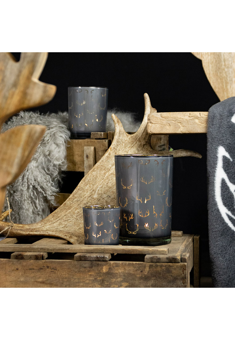 Entdecke die stilvollen Windlichter der Marke "Luxery Living" von Mars&More in einem eleganten Taupe-Ton mit filigranen Hirschgeweih-Motiven. Das Besondere: Die Innenseite ist in einem warmen Goldton gehalten, der beim Anzünden der Kerze ein sanftes, goldenes Schimmern durch die Geweihe wirft. Dieser bezaubernde Effekt zaubert eine warme, gemütliche Stimmung in dein Zuhause und bringt Chalet-Atmosphäre direkt in dein Wohnzimmer – perfekt für die kalte Herbst- und Winterzeit. Die Windlichter sind in drei Grössen erhältlich: 8 cm, 12 cm und 18 cm. Du kannst sie einzeln kaufen oder nach Belieben kombinieren, um ein harmonisches Set zu gestalten, das deinem individuellen Einrichtungsstil entspricht. Ob als Einzelstück, Duo oder im Dreierset – diese winterlichen Windlichter sind ein stilvolles Highlight und eine wundervolle Ergänzung für jede Dekoration.