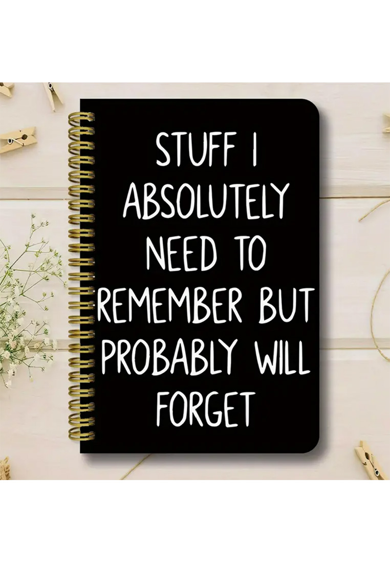 Das Notizbuch Remember ist der ideale Begleiter für alle, die sich gerne Notizen machen – und dabei ihren Sinn für Humor nicht verlieren. Mit dem augenzwinkernden Spruch „Stuff I absolutely need to remember but probably will forget“ auf dem Cover sorgt es schon beim Aufschlagen für ein Schmunzeln. Auf 100 linierten Seiten bietet es reichlich Platz für Gedanken, To-do-Listen, Ideen oder wichtige Termine. Die stabile Spiralbindung macht das Umblättern besonders praktisch und sorgt dafür, dass das Notizbuch flach aufliegt. Mit seinen handlichen Massen von ca. 21 x 14 cm passt es perfekt in jede Tasche und eignet sich für Büro, Schule, Uni oder unterwegs. Auch als originelles Geschenk ist es eine tolle Wahl, die garantiert gut ankommt.