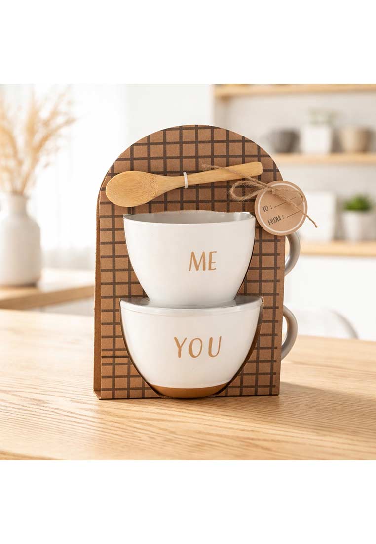 Dieses liebevoll gestaltete Set aus zwei Keramiktassen in Weiss ist eine charmante Geschenkidee und sorgt für besondere Genussmomente zu zweit. Die beiden Tassen sind mit den Aufschriften „ME“ und „YOU“ versehen und symbolisieren Verbundenheit auf stilvolle, moderne Weise, während die klare Form und die warme, natürliche Gestaltung vielseitig zu verschiedenen Einrichtungsstilen passen. Gefertigt aus hochwertiger Keramik, sind die Tassen spülmaschinenfest, ofenbeständig und mikrowellengeeignet, wodurch sie sich ideal für den täglichen Gebrauch eignen und gleichzeitig langlebig bleiben. Das Set wird dekorativ verpackt mit einem passenden Holzlöffel geliefert und eignet sich perfekt als kleines Geschenk, für gemeinsame Kaffee- oder Teemomente oder als hübsches Detail in der eigenen Küche.