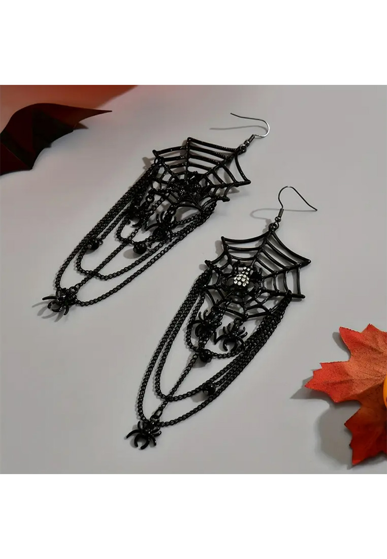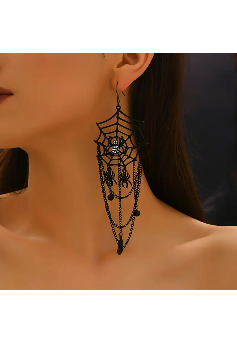 Die Spinnennetz-Ohrringe mit filigranen Ketten und kleinen Spinnen sind das perfekte Accessoire, um deinem Halloween-Outfit den letzten gruseligen Schliff zu verleihen. Das aufwendige Design kombiniert schwarzes Metall mit detailreichen Netzen und Anhängern, die bei jeder Bewegung geheimnisvoll mitschwingen. Besonders eindrucksvoll wirken sie in Kombination mit einem schwarzen Dirndl und weiteren Halloween-Accessoires wie Netzstrümpfen oder der Spinnwebenbluse – so entsteht im Handumdrehen ein einzigartiger Gothic-Look. Ob für die Halloween-Party, ein Kostüm-Event oder einfach als auffälliges Statement-Piece: Diese Ohrringe sorgen garantiert für Aufsehen.