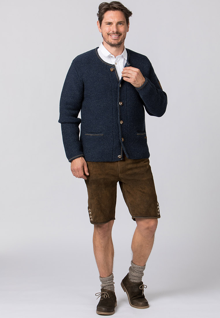 Trachten-Strickjacke Amaro von Stockerpoint Classics. Die Strickjacke wird aus einer feinen Wollmischung gefertigt und hat einen besonders weichen Griff. Eine sehr hochwertige Verarbeitung und die trendige Linksstrick-Optik prägen das trachtige Design. Die klassische, gerade Schnittführung mit einem Rundhalsausschnitt garantiert eine sehr gute Passform und einen angenehmen Tragekomfort. Passende Hornknöpfe setzten sich gekonnt in Szene und geben ihr den traditionellen Touch. Die Trachtenjacke ist ein absoluter Klassiker und guter Kombipartner zur Lederhose.