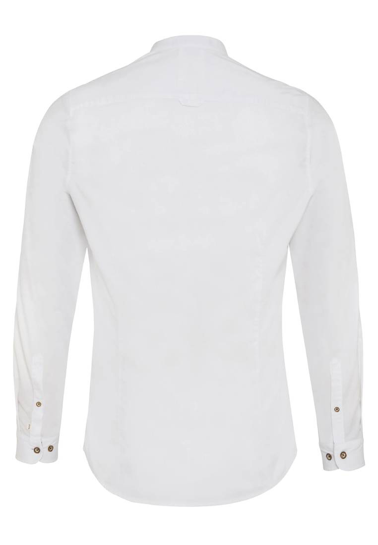 Elegantes Trachtenhemd Slim Fit in Weiss – stilvoll und vielseitig kombinierbar! - Dieses weisse Trachtenhemd überzeugt durch sein modernes Slim-Fit-Design und ist die perfekte Wahl für alle, die Wert auf eine schlanke, maskuline Passform legen. Der klassische Stehkragen in Kombination mit den edlen Knöpfen verleiht dem Hemd eine traditionsbewusste, gleichzeitig aber zeitgemässe Ausstrahlung. Gefertigt aus hochwertiger Baumwolle sorgt das Hemd für ein angenehmes Tragegefühl – ob beim Oktoberfest, an einer Trachtenhochzeit oder einfach als stilvolles Alltagshemd. Der schlichte weisse Farbton macht es besonders vielseitig: Kombiniere es zu Lederhosen für den authentischen Trachtenlook oder trage es zu Jeans und Sakko für einen modernen, eleganten Auftritt. Mit seinem klaren Design ist dieses Hemd ein echtes Must-have für Herren, die klassische Trachtenmode mit urbanem Flair verbinden möchten.