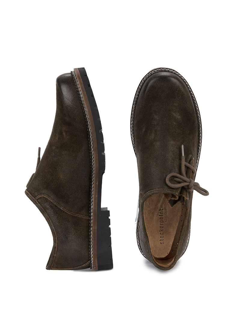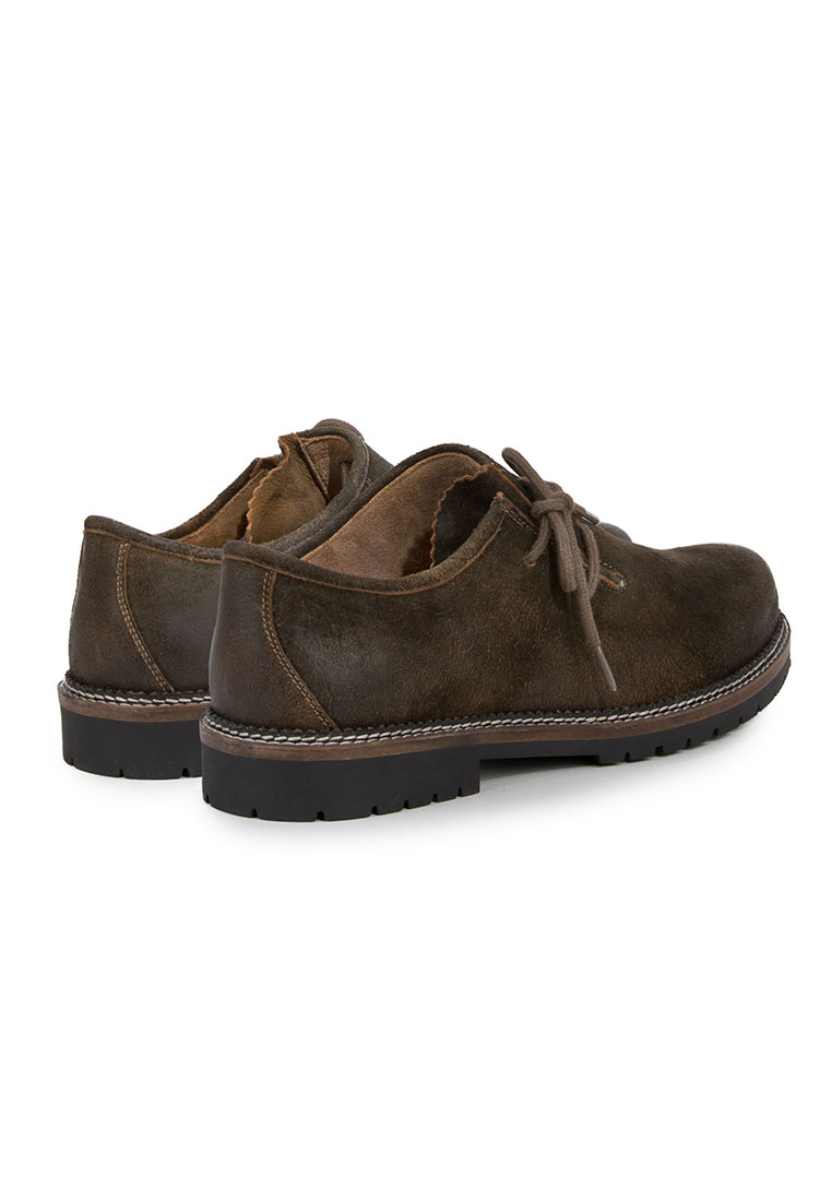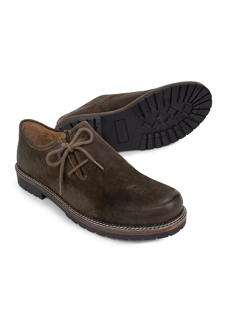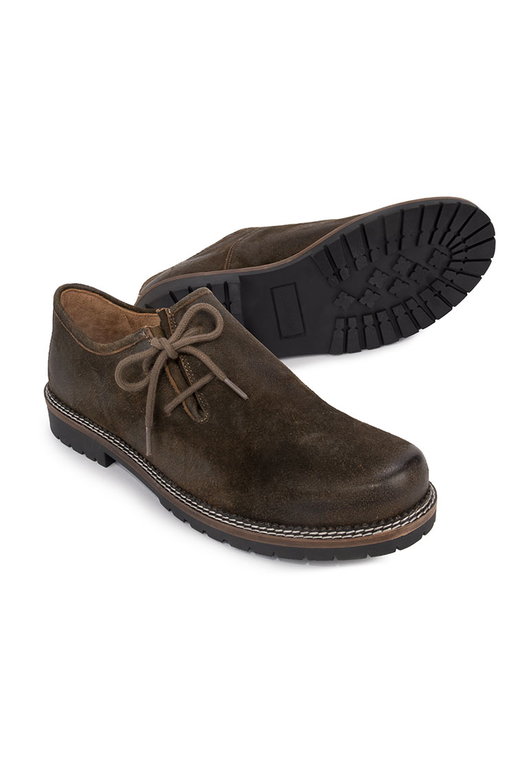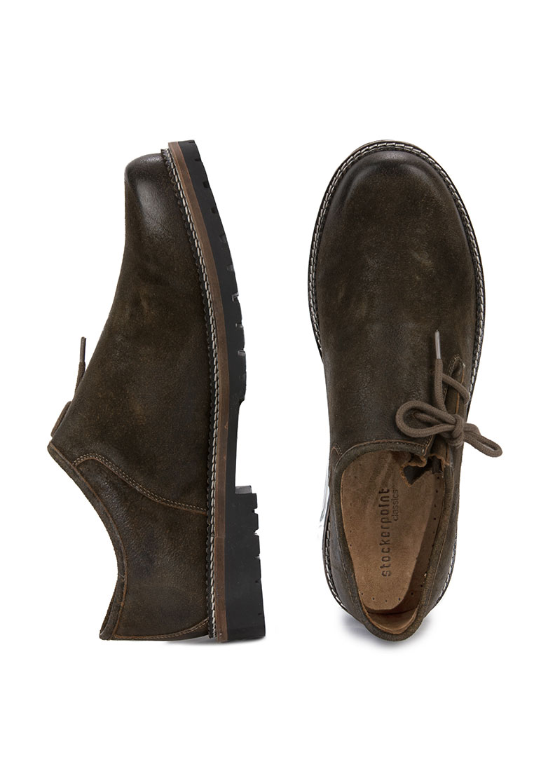Haferlschuh Tailor von Stockerpoint Classics. Der klassische Trachtenschuh ist aus hochwertigem Wildbock-Leder in Hirschoptik oder in robustem Rindsnappaleder gefertigt und passt sich dank der seitlichen Schnürung optimal an deinen Fuß an. Ein hoher Tragekomfort ist garantiert. Das Innenfutter ist aus weichem Kalbsleder gefertigt und garantiert, dass der Schuh auch nach längerem Tragen noch komfortabel ist. Robust und wetterbeständig ist die spezielle Gummisohle und sorgt für einen traditionellen Auftritt. Der beliebte Haferlschuh ist der ideale Kombipartner zum klassischen Trachtenoutfit. Die Farbe des Schuhs ist ausgezeichnet zur Kombination zum Leder der Lederhose. Ein passender Trachtensocken dazu und du bist richtig für die Wiesn, das Schlagerfest oder das Gabalier Konzert ausgestattet.
