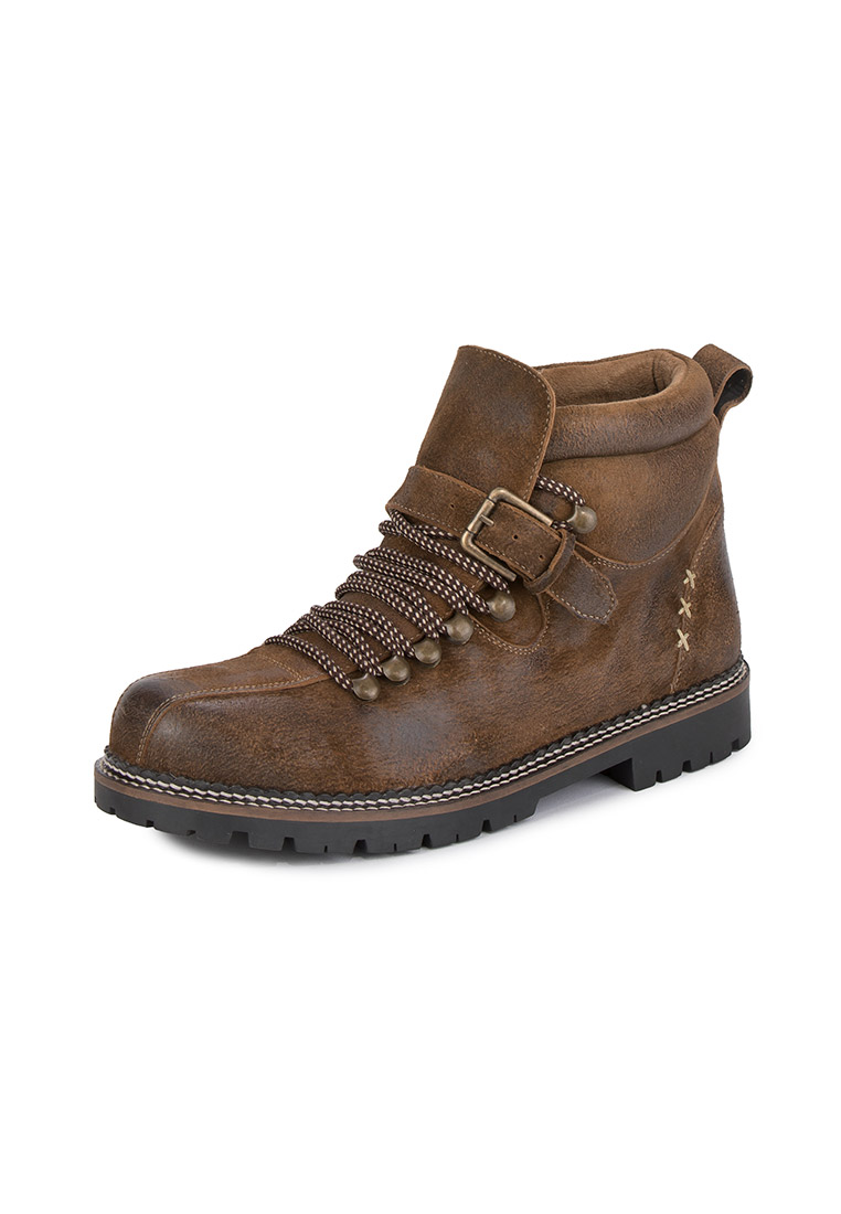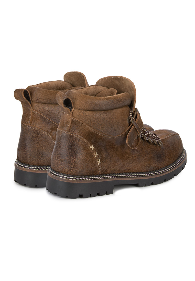 Der traditionelle Trachtenstiefel Tiago von Stockerpoint Classics ist aus hochwertigem Leder gefertigt und passt sich dank der Schnürung optimal an den Fuß an. Dabei bietet er hohen Tragekomfort. Das Innenfutter aus weichem Kalbsleder garantiert, dass der Schuh auch nach längerem Tragen noch komfortabel bleibt. Die spezielle Gummisohle ist robust und wetterbeständig und sorgt für einen alpinen Auftritt. Übrigens fertigen wir die beliebten Trachtenstiefel aus dem gleichen Leder wie unsere Lederhosen, sodass sie sich perfekt dazu kombinieren lassen. Für die Farbe dunkelbraun verwenden wir feinstes Rindsleder, während bei der Farbe hellbraun nur bestes Wildbockleder zum Einsatz kommt.