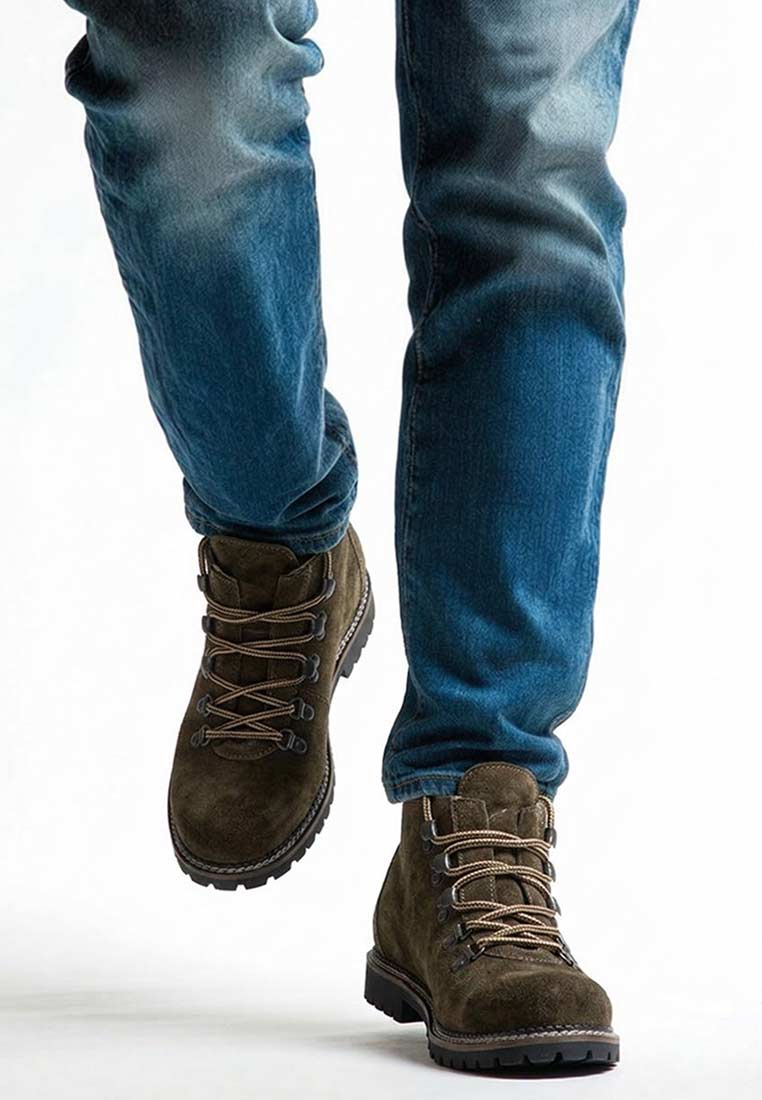 Der Trachtenschuh Jake dunkelbraun von Mei Schua vereint traditionelles Design mit modernem Tragekomfort. Gefertigt aus hochwertigem Echtleder, überzeugt dieser robuste Boot durch seine erstklassige Verarbeitung, seine Langlebigkeit und eine stilvolle, rustikale Optik – perfekt zur Lederhose, aber auch im Alltag ein echter Hingucker. Das weiche Lederfutter im Inneren sorgt für ein angenehmes Tragegefühl, während die zwiegenähte Machart dem Schuh zusätzliche Stabilität und Widerstandskraft verleiht. Die gepolsterte Zunge verhindert Druckstellen – ideal für lange Tage auf dem Volksfest oder gemütliche Herbstspaziergänge. Mit den stabilen, doppelt vernieteten Schnürhaken lässt sich der Schuh zuverlässig fixieren, während die griffige Sohle für sicheren Halt auf verschiedenem Untergrund sorgt. Trotz seiner robusten Bauweise bleibt der Schuh angenehm leicht und bequem. Ob fürs Oktoberfest, eine Tour durch die Berge oder einfach als stylischer Alltagsbegleiter – dieser Trachtenboot passt immer und sorgt Schritt für Schritt für Komfort und Stil.