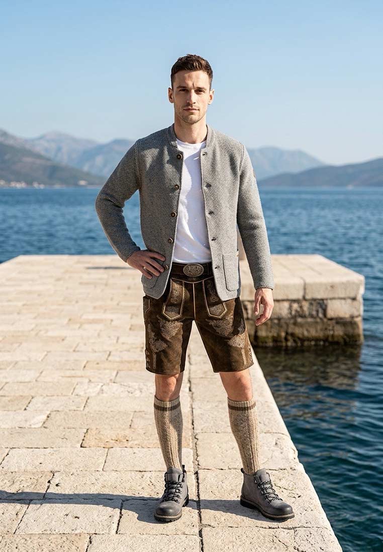 Der Trachtenschuh Jake in Grau von Mei Schua verbindet kernigen Bergschuh-Look mit traditioneller Trachtenmode. Gefertigt aus hochwertigem Ziegenveloursleder in einem stylischen Grauton, überzeugt dieser Boot durch seine rustikale Optik und bequeme Passform. Die markante Schnürung mit Metallösen sorgt für festen Halt und rundet das alpine Design perfekt ab. Die griffige Profilsohle bietet dir nicht nur auf dem Volksfest, sondern auch im Alltag stabilen Komfort – egal ob zur Lederhose oder Jeans. Jake ist der perfekte Begleiter für alle, die’s lässig, aber authentisch mögen.