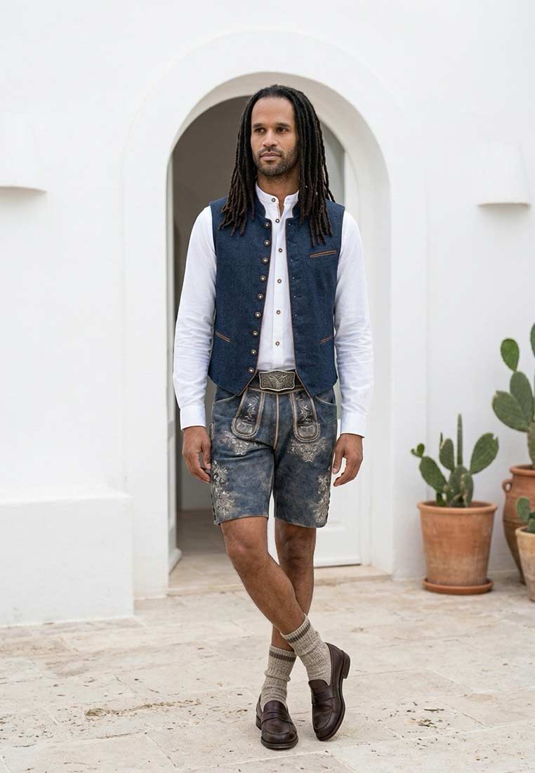 Die Trachtenweste „Oliver“ von Maddox überzeugt mit klassischem Charme und modernen Details. Gefertigt aus hochwertigem Leinen-Mix in edlem Marineblau, bringt sie frischen Schwung in jedes Trachten-Outfit – ob zur Lederhose oder kombiniert mit einer Jeans für einen stilvollen, urbanen Look. Feine Akzente wie die rustikalen Knöpfe in Hirschhorn-Optik, das kontrastierende Einfassband in Braun sowie das traditionelle Karofutter in Blau-Weiß sorgen für authentischen Charakter. Die gerade Passform und der Stehkragen verleihen der Weste eine schlanke, elegante Silhouette – ideal für festliche Anlässe wie Hochzeiten, Volksfeste oder Familienfeiern.