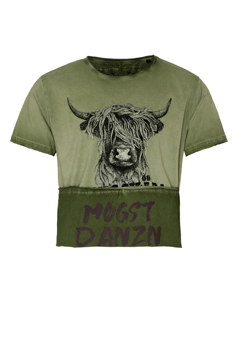 Hangowear T-Shirt "Dickschädel" – lässiger Trachtenstyle mit Charakter. Dieses olivgrüne T-Shirt von Hangowear vereint modernen Trachtenlook mit einem kräftigen Statement. Der auffällige Frontprint zeigt einen detailverliebten Highland-Stier, dessen markantes Aussehen für Stärke und Eigenwilligkeit steht. Direkt darunter sorgt der freche Schriftzug „Dickschädel“ für Aufmerksamkeit und ein Schmunzeln – perfekt für alle, die zu ihrer sturköpfigen Art stehen. Gefertigt aus weicher Baumwolle bietet das Shirt ein angenehmes Tragegefühl und eine hochwertige Verarbeitung. Der lässige Rundhalsausschnitt mit leichten Used-Details und der moderne, leicht taillierte Schnitt machen dieses T-Shirt zum idealen Begleiter – ob zur Lederhose auf dem Oktoberfest, zur Jeans im Alltag oder beim gemütlichen Zusammensitzen mit Freunden. Mit seinem einzigartigen Design und dem humorvollen Print ist dieses Statement-Shirt ein echtes Must-have für alle, die Trachtenmode neu interpretieren möchten. Ideal für Männer mit Persönlichkeit, Stilbewusstsein und einem Augenzwinkern.