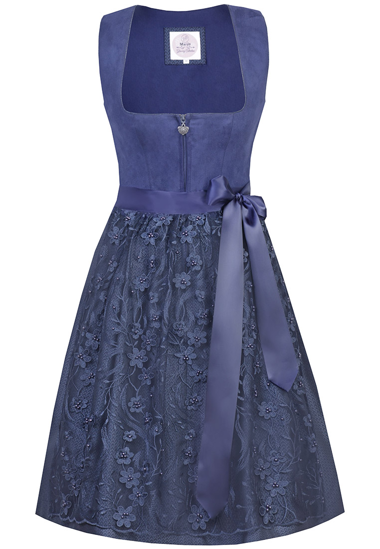 Das Dirndl Isa von Marjo Trachten in elegantem Blau überzeugt mit seiner monochromen, ton-in-ton Optik. Das schlichte Oberteil wird durch den mittigen Reißverschluss modern in Szene gesetzt, während die Spitzenschürze im gleichen Blauton dem Dirndl eine edle Note verleiht. Mit einer Rocklänge von 65 cm ist es perfekt für viele Anlässe. Bitte beachte, dass die Bluse nicht inklusive ist – aber in unserem Shop findest du eine schöne Auswahl an Blusen, die dieses Dirndl perfekt ergänzen.