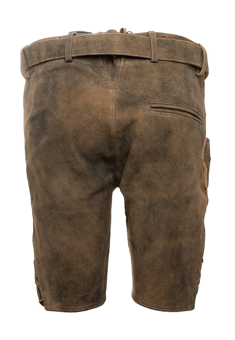 Die Lederhose Almsach Giovanni ist eine kurze Trachtenlederhose der bekannten Marke Almsach. Hergestellt aus hochwertigem Geissbockleder ist sie nicht nur robust und langlebig, sondern bietet auch ein angenehmes Tragegefühl auf der Haut. Die Hose verfügt über eine Schnürung am Bein, die eine individuelle Anpassung an die Körpergrösse und -form ermöglicht. Ein besonderer Hingucker sind die aufwendigen Stickereien, die die Vorder- und Rückseite der Hose zieren. Die Verarbeitung ist von höchster Qualität und unterstreicht den traditionellen Charakter dieser Trachtenhose. Die Lederhose Almsach Giovanni wird mit einem passenden Gurt geliefert, der das Outfit perfekt abrundet und den typischen Trachtenlook unterstreicht. Egal ob auf dem Oktoberfest oder bei anderen festlichen Anlässen – mit der Lederhose Almsach Giovanni machen Sie garantiert eine gute Figur.