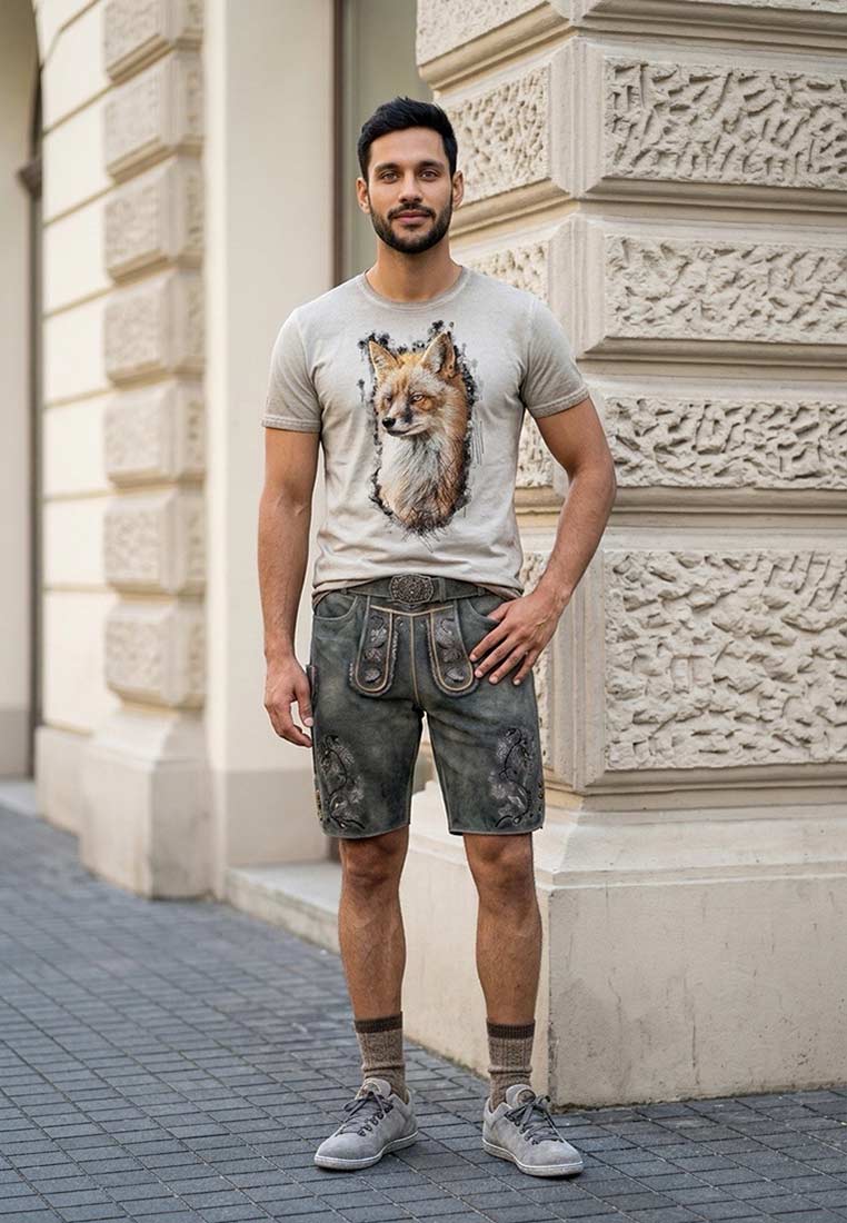 Die Lederhose Fleesensee Rauch von Maddox besticht durch ihre rauchgraue Farbgebung, die ihr eine elegante und zugleich rustikale Optik verleiht. Die klassischen Stickereien, die die Hosenbeine und den Hosenlatz zieren, sind ein wahres Highlight und verleihen der Hose einen authentischen Trachtencharakter. Drei Hirschhornknöpfe, die jeweils an der seitlichen Hosennaht angebracht sind, ergänzen das Design der Hose perfekt. Die Lederhose wird mit einem passenden Gürtel geliefert, der sowohl funktional als auch stilvoll ist. Der Gürtel ist aus hochwertigem Material gefertigt und sorgt für einen optimalen Sitz der Hose, sodass Sie sich den ganzen Tag über wohlfühlen können. Egal, ob auf dem Oktoberfest, bei Trachtenveranstaltungen oder festlichen Anlässen – die Lederhose Fleesensee Rauch ist ein absolutes Must-have für jeden Trachtenliebhaber. Vielseitig kombinierbar mit verschiedenen Trachtenhemden und Accessoires, zieht sie stets alle Blicke auf sich.