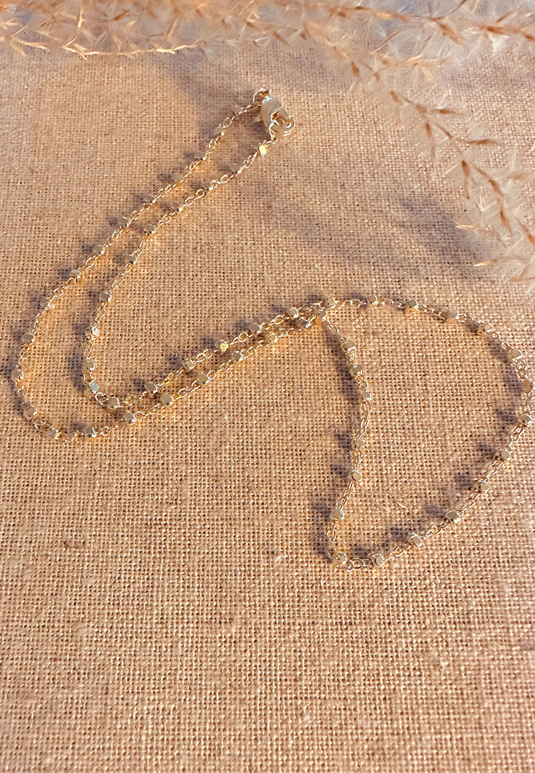 Die Halskette "Planetli" von Steinkult ist ein faszinierendes Schmuckstück, das mit seiner einzigartigen Gestaltung begeistert. Die Länge der Kette Planetli von Steinkult von 40 cm ist perfekt, um sie nahe am Hals zu tragen und sie allein oder in Kombination mit anderen Schmuckstücken zu tragen. Sie lässt sich leicht mit einem Verschluss öffnen und schließen, was das An- und Ausziehen erleichtert.