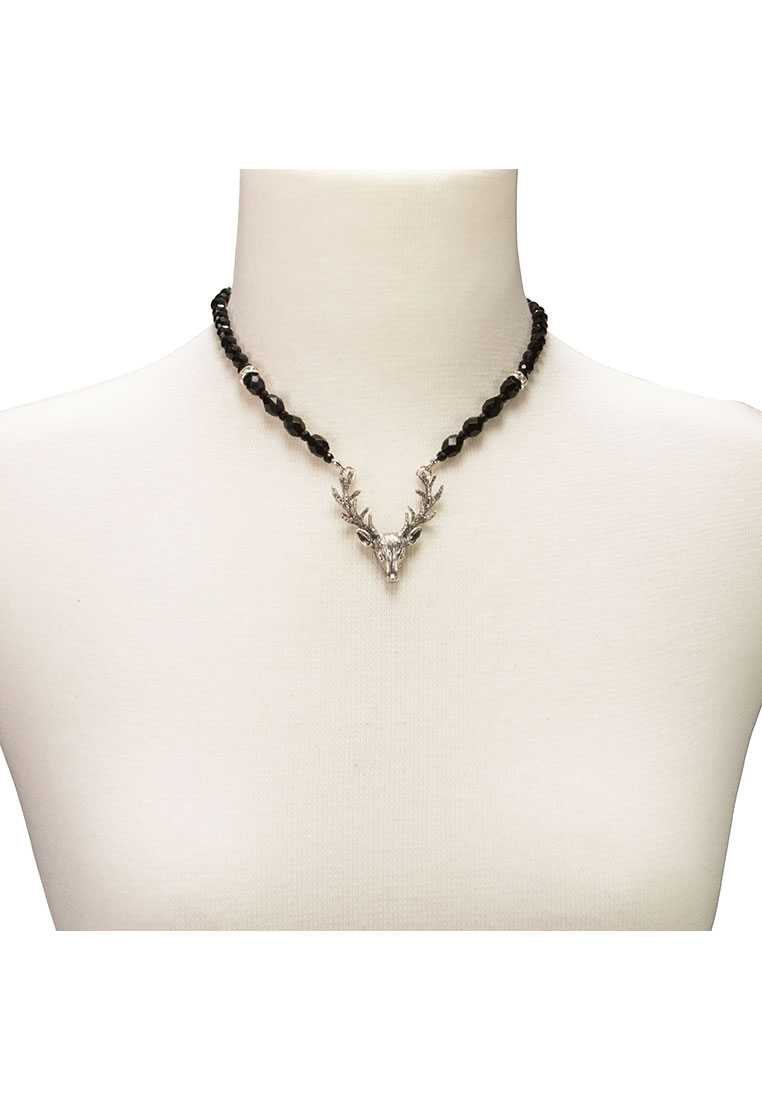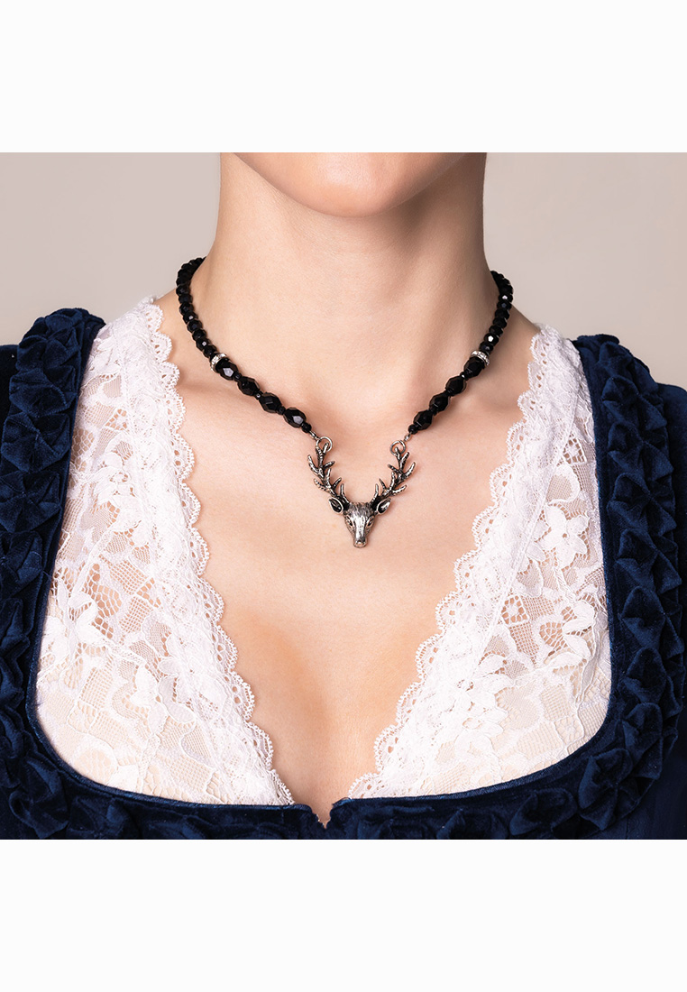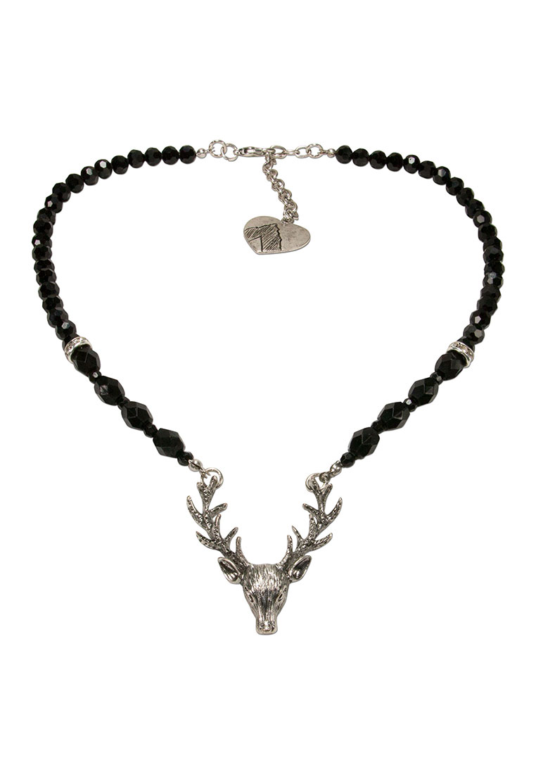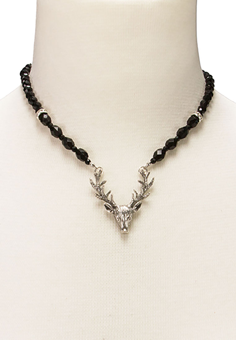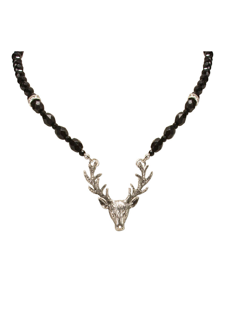 Elegante Perlenhalskette aus verschiedenen Perlen und einem Hirschkopf-Anhänger. Diese Trachtenkette glitzert wundervoll im Dekolleté und unterstreicht ihr Trachtenoutfit. Länge Trachten Halskette: ca. 41 cm + 7 cm Verlängerungs-Kette, Anhänger Hirsch-Kopf mit Strass-Steinen: ca. 4 x 4 cm. Wunderschöner Dirndlschmuck aus Perlen, Perlenkette mit Hirsch und Geweih, von Hand gefertigt, angenehmes Tragegefühl. Trachten-Kette perfekt zum Trachten-Outfit (Dirndl, Lederhose, Trachtenbluse, Oktoberfest)