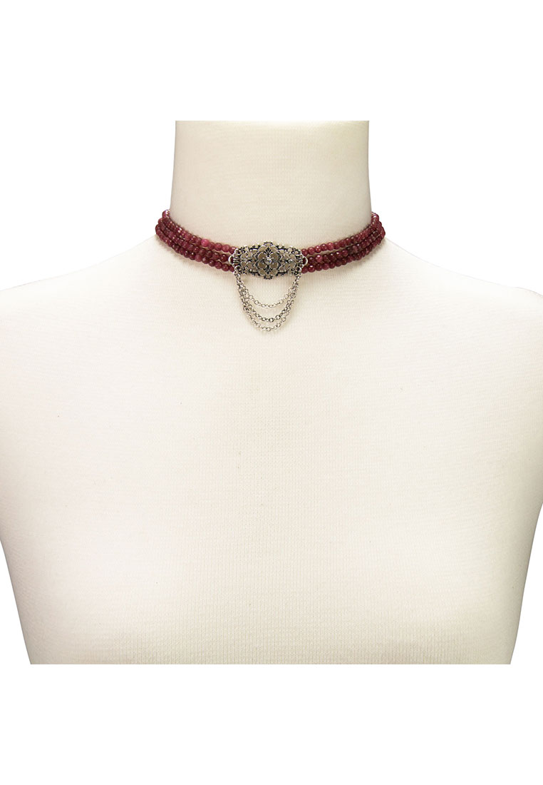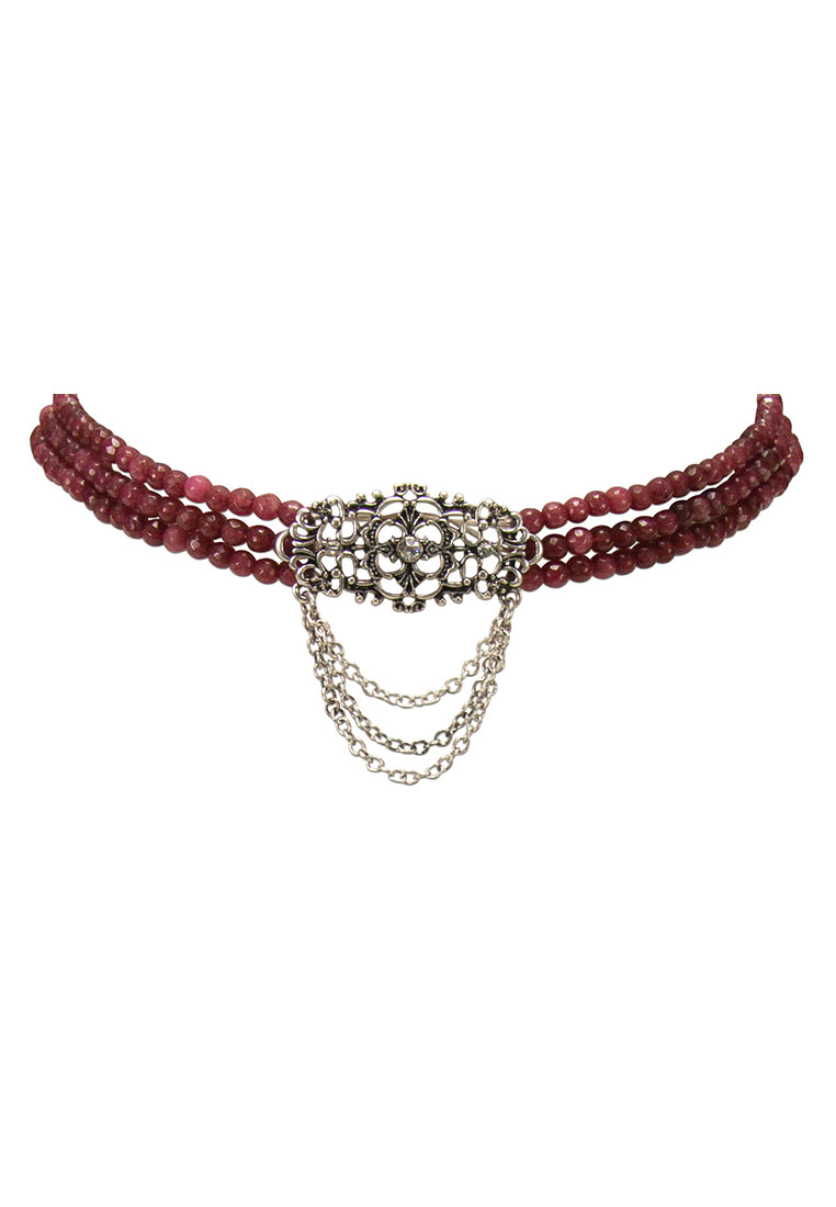 Wunderschöne 3-reihige Perlen-Kropfkette aus kleinen Perlen. Das filigrane Mittelelement ist mit Strass-Steinen und kaskadischen Kettenelementen verziert. Eine elegante Dirndlkette und zeitlos schön. 3-reihige Trachten Halskette mit Trachten-Ornament und Strass-Steinen: ca. 32 cm + 7 cm Verlängerungs-Kette. Wunderschöner traditioneller Dirndlschmuck aus Perlen, Perlenkette von Hand gefertigt, Kropfkette hat angenehmes Tragegefühl. Material: 70% Glas, 20% Metall-Legierung, 10% Eisen