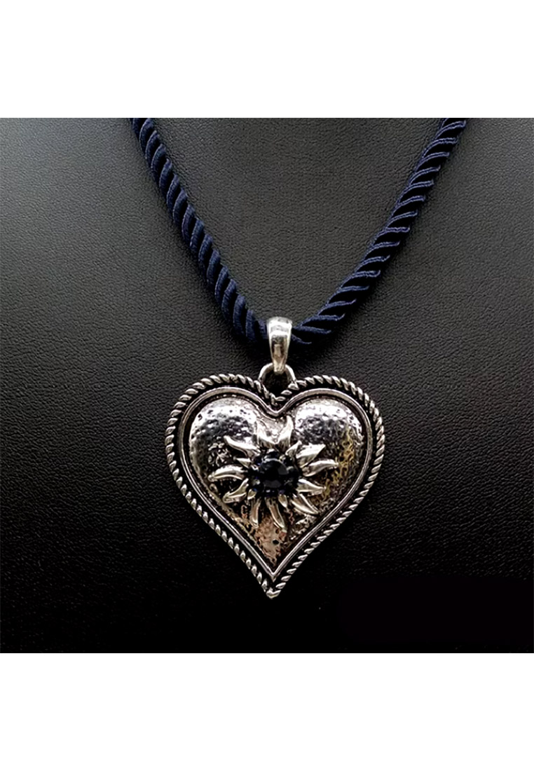 Diese elegante Trachtenkette ist das perfekte Accessoire für alle, die ihre Liebe zur Tradition und zum Stil zum Ausdruck bringen möchten. Der hübsche Herzanhänger hat eine Grösse von etwa 4 x 3,5 cm und ist mit funkelnden Steinchen besetzt, die das edle Edelweissmotiv im Herzen zum Strahlen bringen. Das zarte Band ist in einer traditionellen Kordeloptik gehalten und rundet das Design harmonisch ab. Ob zur Frühlingswiesn, zum Oktoberfest oder anderen festlichen Anlässen – dieses Schmuckstück verleiht jedem Dirndl oder Trachtenoutfit den letzten Schliff und sorgt für strahlende Blicke.