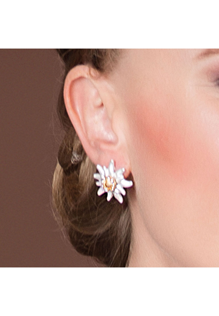 Strass-Edelweiß-Ohrstecker sind eine ideale Ergänzung zu jedem Dirndl. Die Trachtenohrringe sind in weiß und gold gehalten und die Strass-Steine funkeln am Ohr. Ein absoluter Allrounder und sollten in keinem Schmuckkästchen fehlen. Durchmessser Trachtenohrringe mit Edelweiss und Strass-Steinen: ca. 2 cm. Wunderschöner klassischer Dirndlschmuck, Ohrschmuck von Hand gefertigt, angenehmes Tragegefühl. Dirndl-Ohrringe perfekt zum Trachten-Outfit (Dirndl, Lederhose, Trachtenbluse, Oktoberfest)