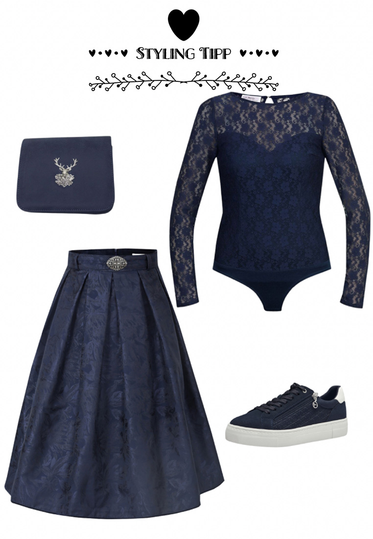 Die Trachtentasche Eluisa dunkelblau aus veganem Leder ist ein charmantes Accessoire, das perfekt zu deinem Oktoberfest-Trachtenoutfit passt. Das besondere Highlight dieser Trachtentasche ist die hübsche Verzierung in Form eines Hirschkopfes mit einem Edelweißmotiv in Metall-Silber. Diese Verzierung verleiht der Tasche einen traditionellen alpinen Touch und macht sie zu einem echten Blickfang. Die Tasche verfügt über ein kleines separates Innenfach mit einem Reißverschluss. Der dazu passende Schultergurt ermöglicht ein bequemes Tragen. Die Masse sind: 18cmx15cmx7cm. Ein passendes Dirndl oder gar ein komplettes Trachtenoutfit dazu findest du bestimmt in unserem Laden oder Onlineshop.