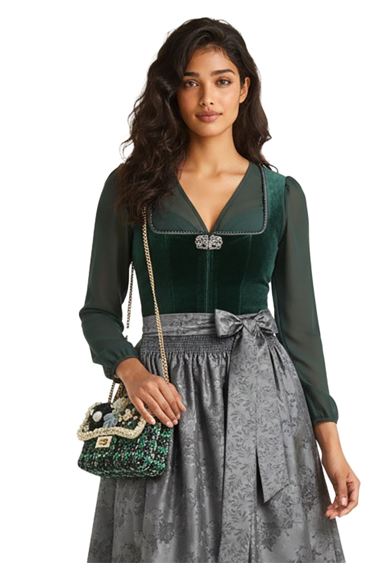 Diese edle Trachtentasche ist ein wahres Schmuckstück und verleiht jedem festlichen Outfit das gewisse Etwas. Gefertigt aus Bouclé- oder Tweedstoff im Stil klassischer Chanel-Optik, vereint sie Tradition mit moderner Eleganz. Jede Tasche ist ein liebevoll verziertes Unikat und begeistert durch ihre detailreiche Gestaltung. Üppige Perlenränder, zarte Stoffblumen, glitzernde Strass-Elemente und goldfarbene Ketten machen sie zu einem stilvollen Blickfang. Die Tasche ist kompakt und dennoch praktisch geschnitten, ideal, um das Nötigste wie Handy, Lippenstift oder Schlüssel stilvoll unterzubringen. Ein magnetischer Verschluss sorgt für einfaches Öffnen und Schliessen. Das weiche Innenfutter rundet das hochwertige Gesamtbild ab. Ob zum Dirndl, bei Hochzeiten, Taufen oder auf dem Oktoberfest – diese Tasche passt perfekt zu jedem Trachten-Look und ist zugleich ein Ausdruck von Individualität und femininem Charme. Wichtig: Da jede Tasche individuell von Hand dekoriert ist, kann es zu kleinen Abweichungen zum Produktbild kommen – die Tasche ist so einzigartig, wie ihre Trägerin.