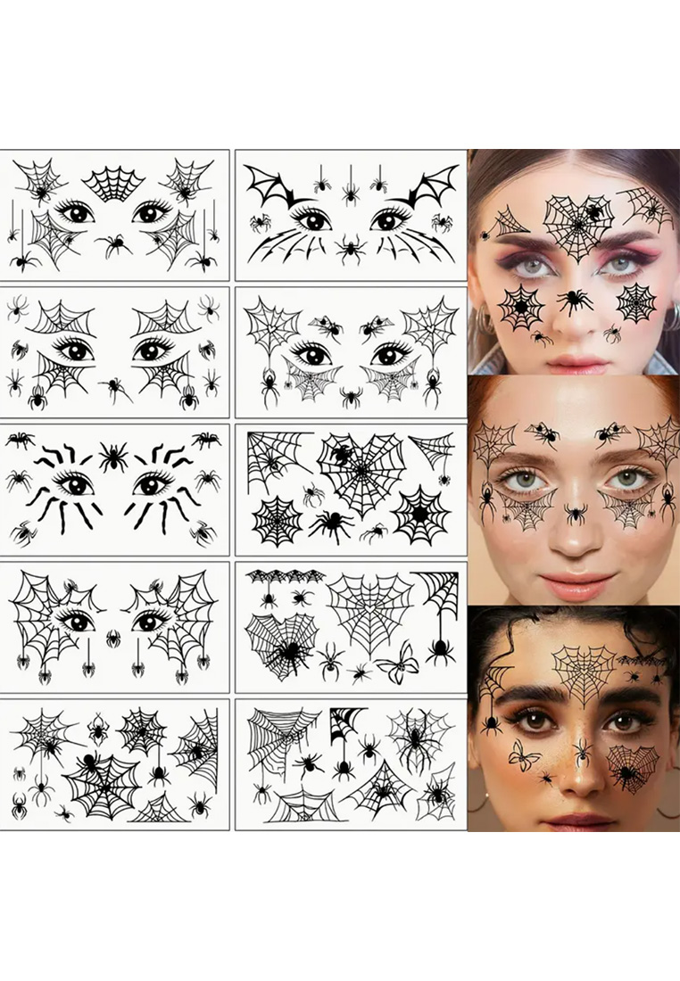 Mit den temporären Tattoo-Aufklebern der Halloween Spinnen-Serie verwandelst du dein Gesicht im Nu in ein schaurig-schönes Kunstwerk. Die schwarzen Spinnennetze und Spinnenmotive sind speziell für Gesicht und Augenlider gestaltet und sorgen für einen auffälligen, gruseligen Look – perfekt für Halloween-Partys, Kostüme oder Motto-Events. Die Tattoos lassen sich ganz einfach auftragen, halten zuverlässig und sind ebenso leicht wieder zu entfernen. Ob als Ergänzung zu einem schwarzen Dirndl, in Kombination mit Netzstrümpfen oder als Highlight zu deinem Gothic-Make-up – mit diesem 10er-Set bist du bestens ausgestattet, um an Halloween garantiert alle Blicke auf dich zu ziehen. Ob als Ergänzung zu einem schwarzen Dirndl, kombiniert mit Netzstrümpfen, Spinnwebenbluse oder gruseligen Accessoires – diese Tattoos machen deinen Look komplett und sorgen garantiert für Aufsehen auf jeder Party.