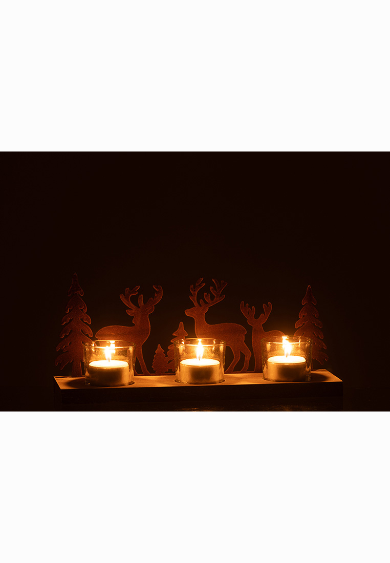 Dieses liebevoll gestaltete Windlicht von J-Line bringt winterliche Waldromantik direkt in Ihr Zuhause. Auf einem naturbelassenen Holzsockel sitzen drei Glashalter für Teelichter, eingerahmt von einer bezaubernden Silhouette aus Hirschen und Tannen. Die Szene wirkt wie ein kleiner Ausschnitt aus einem verschneiten Winterwald – perfekt für gemütliche Stunden in der Advents- und Weihnachtszeit. Dieses liebevoll gestaltete Windlicht von J-Line bringt winterliche Waldromantik direkt in Ihr Zuhause. Die Szene wirkt wie ein kleiner Ausschnitt aus einem verschneiten Winterwald – perfekt für gemütliche Stunden in der Advents- und Weihnachtszeit. Masse: 28x8x11cm.